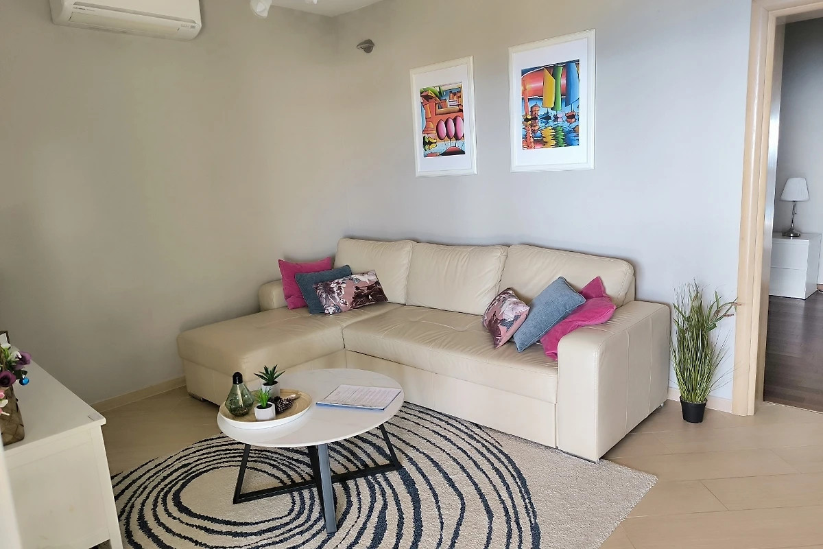Der Strand ist ca. 50 Meter entfernt. Der Zugang zum Strand erfolgte über eine Treppe. Der Kiesstrand ist 550 m entfernt. Die nächsten Restaurants sind 70 und 100 m entfernt. Das Stadtzentrum mit seinen Restaurants und Supermärkten ist ca. 800-1000 m entfernt.