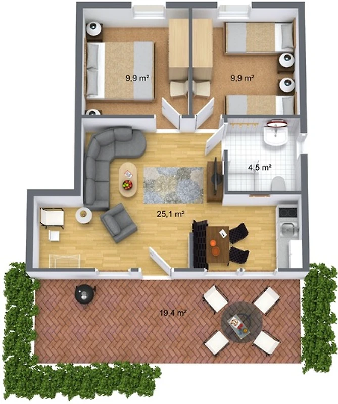 Die grosse Liegewiese vor euerm Ferienhaus, der Swimmingpool, Grillplatz und die grosse Spielanlage bieten eurer gesamten Familie erholsame Urlaubstage.