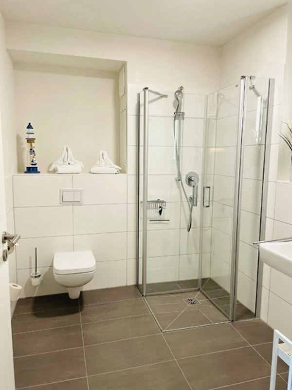 Des Weiteren verfügt die Ferienwohnung über einen voll ausgestatteten Küchenbereich mit Abstellraum, ein Bad mit Dusche&WC sowie ein zusätzliches WC. Die grosszügige Loggia mit Essplatz bietet einen tollen Blick auf die Ostsee und den Weidefelder Strand. Ihr Fahrzeug findet Platz in dem zur Wohnung gehörenden TG-Stellplatz.