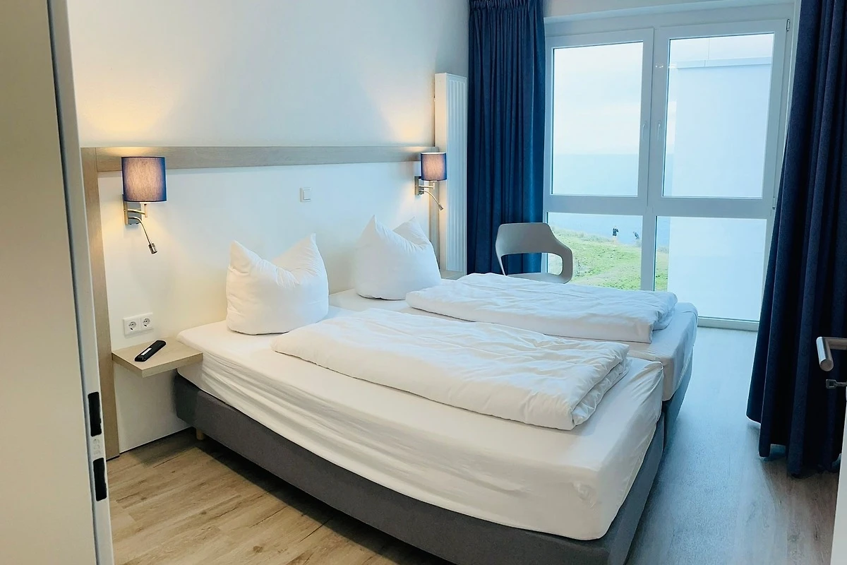 Die Wohnung besitzt 2 Schlafzimmer mit Doppelbetten. Ein Schlafzimmer verfügt zudem über eine begehbare Ankleide. Im zweiten Schlafzimmer kann das Doppelbett in zwei Einzelbetten umgebaut werden. Beide Schlafzimmer sind jeweils mit einem Smart-TV ausgestattet.