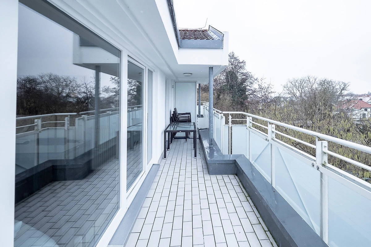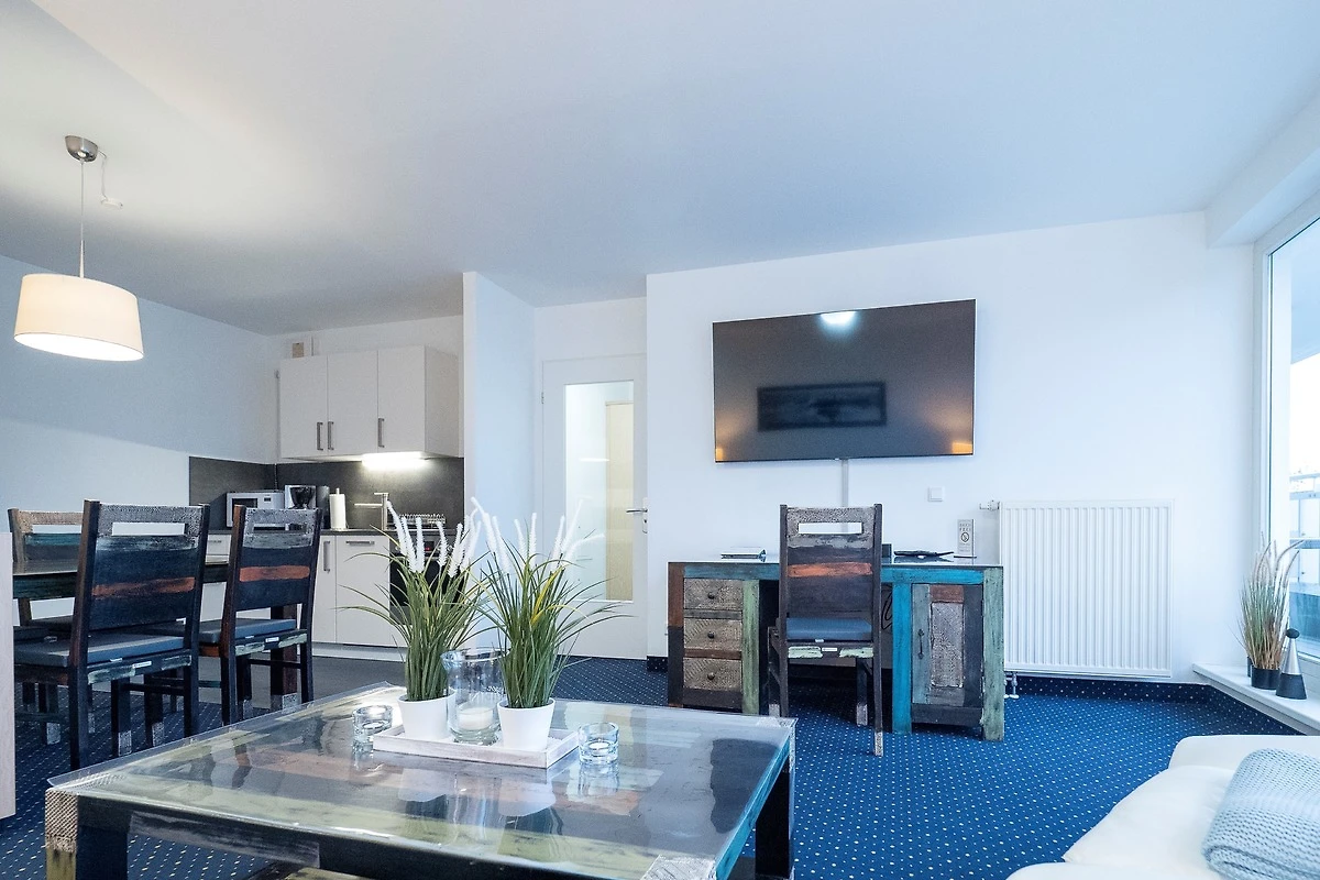 Das komfortabel und modern eingerichtete Apartment inklusive Küche befindet sich nur wenige Meter von der Strandpromenade entfernt. Geniessen Sie tagsüber die Sonne am Strand und erholen Sie sich abends in unserer komplett nach Südwest ausgerichteten Zwei-Zimmer-Wohnung. Durch die raumbreite, bodentiefe Fensterfront des Apartments werden Sie durch die einmalige Süd-West-Ausrichtung den ganzen Tag durch die Sonne verwöhnt. Geniessen Sie vom wohnungsbreiten Balkon des Dachgeschosses aus die Nachmittags- und Abendsonne sowie die beruhigende Aussicht in den mit Bäumen bewachsenen Garten. Den abend- und nächtlichen Trubel der nur wenige Meter entfernten Strandpromenade tauschen Sie nach dem täglichen ausgiebigen Sonnenbaden am Strand am Abend gegen Ruhe und Erholung ein. Zum Apartment gehört der Tiefgaragenstellplatz 110.