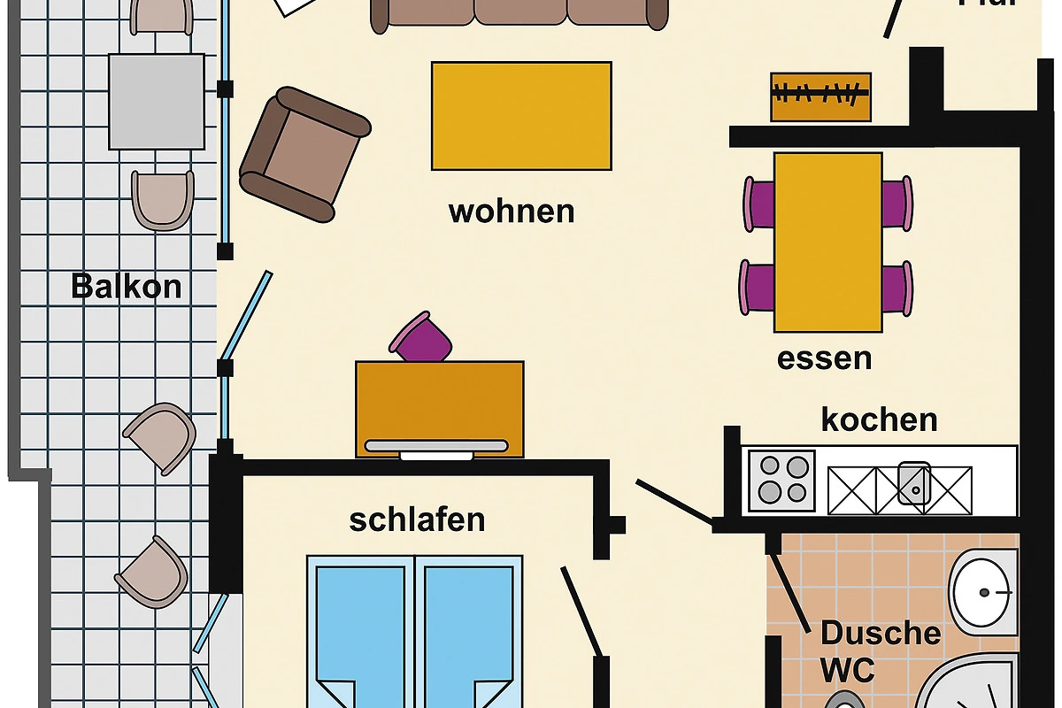 Mir hat nicht gefallen das keine Gardinen im Wohnzimmer vor waren denn die Sonne heizte die Wohnung so auf , einen Sonnenschirm gab es auch nicht . Für die Sauberkeit vergebe ich nur 3 Sterne denn der Teppich war voller Haare . CD Player war auch nicht vorhanden war mir jetzt nicht so wichtig . Gefallen hat uns auch nicht , das man das Gepäck über eine Außentreppe hochtragen mußte. Das Appartement hat uns sonst gut gefallen. Gruß aus Hamburg von Familie Jaeger