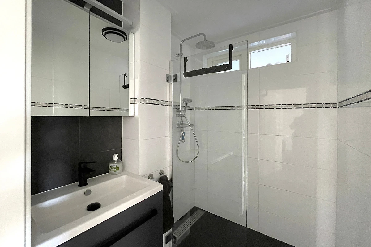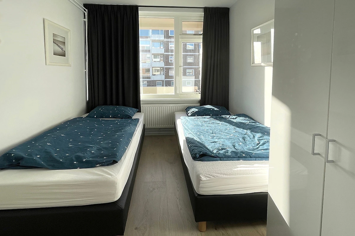 Das Badezimmer hat eine Regendusche mit 2 Handbrausen. Zwei Schlafzimmer ergänzen diese Wohnung mit bequemen Boxspringbetten, das erste Schlafzimmer hat ein Doppelbett und das zweite Schlafzimmer hat zwei Einzelbetten.