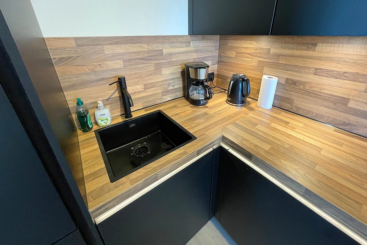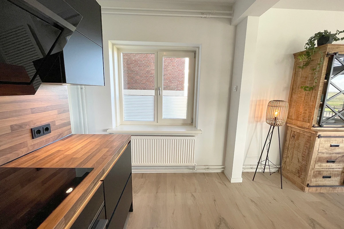 Das Wohnzimmer ist schön hell durch viele grosse Fenster und mit viel Liebe zum Detail eingerichtet, wie z.B. die dekorativen Kissen und die Bepflanzung im Zimmer. Ein Esstisch mit 6 Stühlen bietet Platz, um abends ein Spiel zu spielen, aber auch, um ein ausgiebiges Abendessen gemeinsam zu geniessen. Die Küche ist mit allen modernen Geräten wie einer Kombi-Mikrowelle und einem Geschirrspüler für die einfache Zubereitung von Mahlzeiten ausgestattet.
