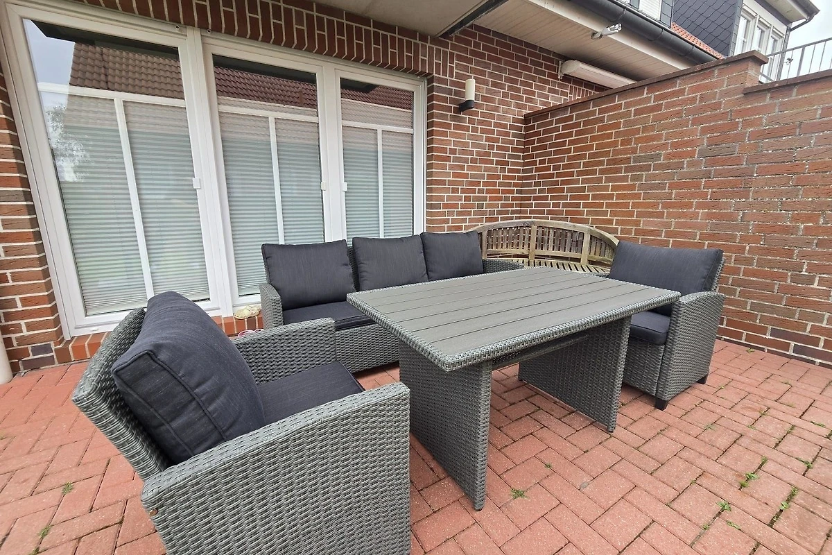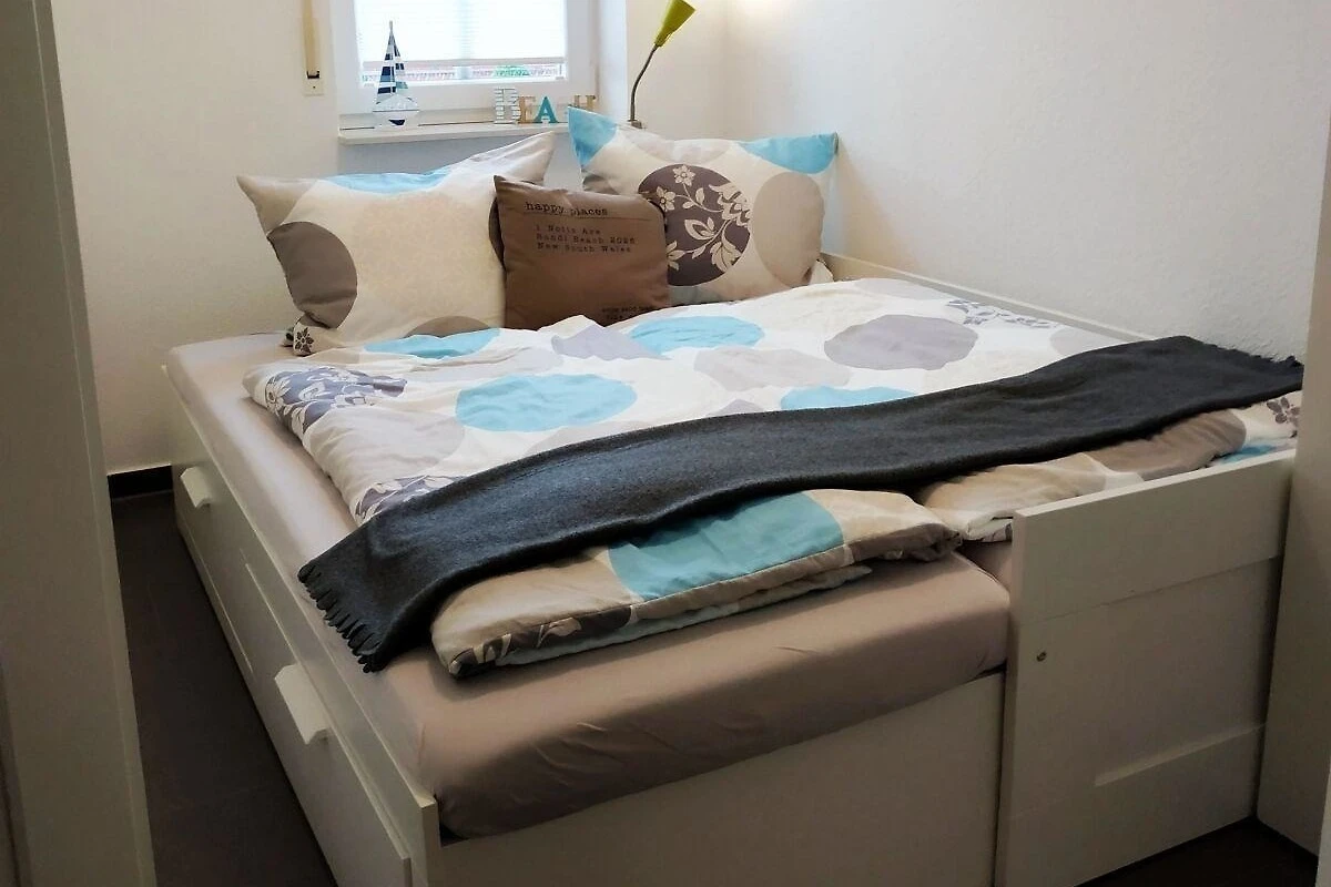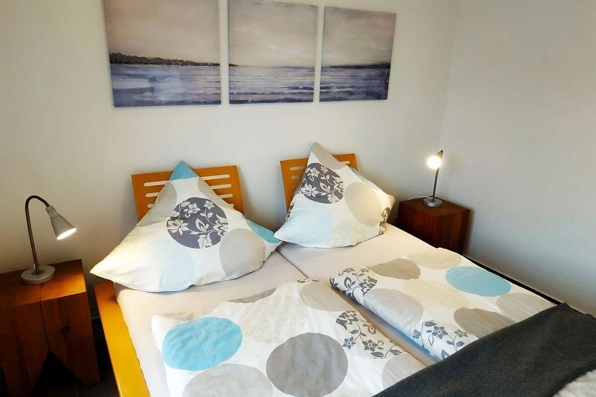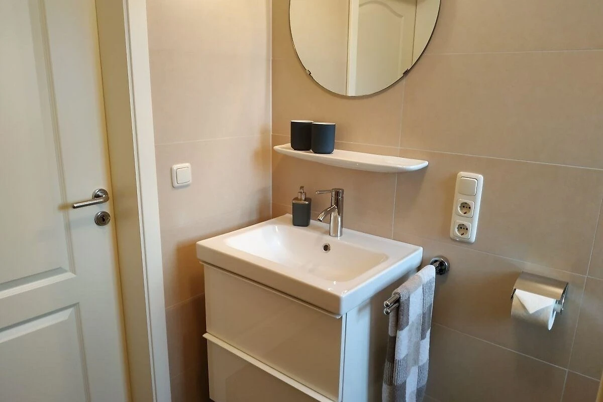 Die Ferienwohnung bietet eine moderne und komfortable Ausstattung, die allen Bedürfnissen gerecht wird. Sie verfügt über zwei Schlafzimmer mit jeweils einem Doppelbett, ideal für Familien oder Paare. Die offene Küche ist bestens ausgestattet mit einem Geschirrspüler, Elektro-/Gasherd, Backofen, Mikrowelle, Kühlschrank und einer Kaffeemaschine. Ein Essbereich mit Tisch und Stühlen lädt zum Verweilen ein. Das Badezimmer ist mit einer bodengleichen Dusche, einem Haartrockner sowie einem Fenster ausgestattet. WLAN sorgt für eine digitale Anbindung. Für Unterhaltung stehen eine HiFi-Anlage, ein TV sowie ein DVD/Blu-Ray-Player zur Verfügung. Zudem ist die Unterkunft allergikergeeignet und bietet einen Starterset mit Pflegeprodukten. Für die kleinen Gäste gibt es einen Kinderhochstuhl und Kinderspielzeug. Eine Waschmaschine, Reinigungsmittel sowie Spiele runden das Angebot ab. Ein Sonnen-Schirm ergänzt die Ausstattung für entspannte Stunden im Freien.