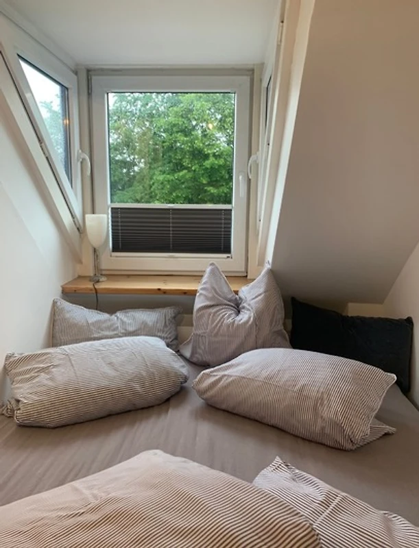 Die helle Wohnung befindet sich im Dachgeschoss , mit einem separaten Schlafzimmer, einem offenen