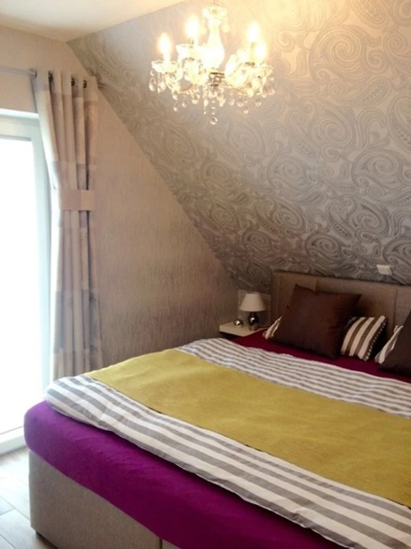 Der offene Wohn- und Essbereich ist mit einer modernen Küche (Kühlschrank mit separatem Gefrierschrank, E-Herd mit Ceranfeld, Backofen, Geschirrspüler, Mikrowelle, Wasserkocher, Kaffeemaschine, Toaster sowie allen weiteren täglich benötigten Gegenstände) ausgestattet. Der Essbereich bietet Platz für 6 Personen. Im Wohnbereich bieten wir ein gemütliches Sofa und einen Fernseher. Es gibt insgesamt 3 Schlafräume. Es befinden sich 2 Bäder im Haus. Das gesamte Haus wird mit einer Fussbodenheizung geheizt. Darüber hinaus haben alle Fenster in den Schlafräumen Rollläden. Als Sichtschutz gibt es im gesamten Haus Plissees. Die Bettwäsche und Handtücher sind im Mietpreis bereits enthalten. Wir freuen uns auf Sie !