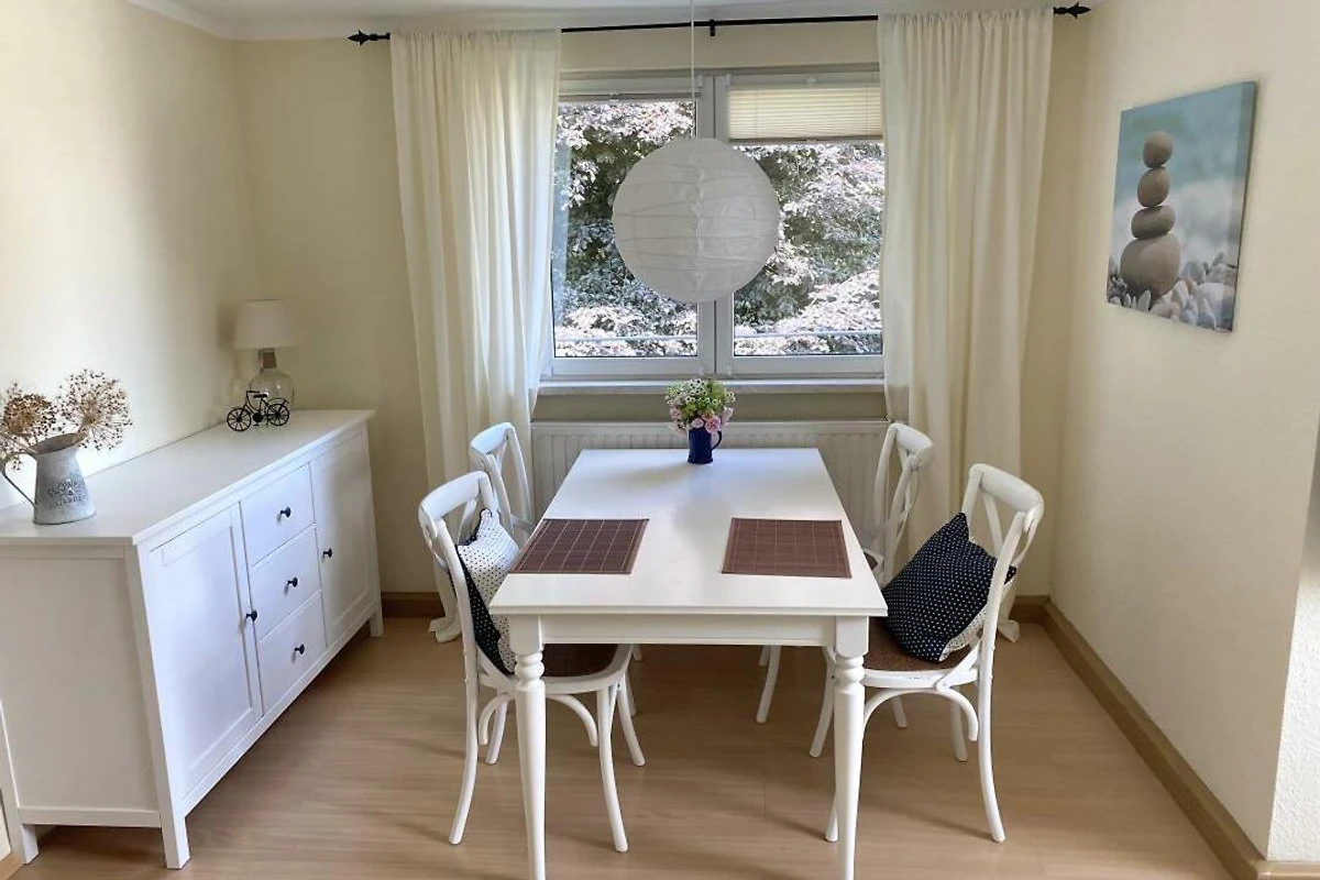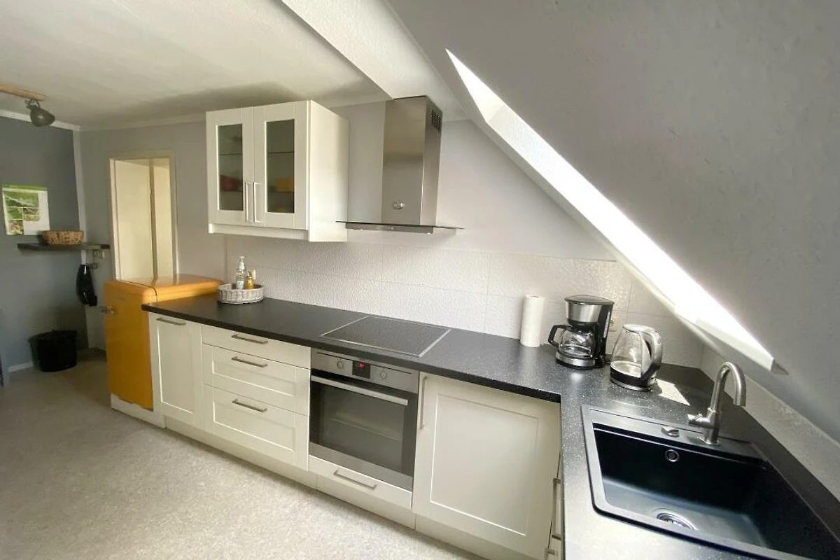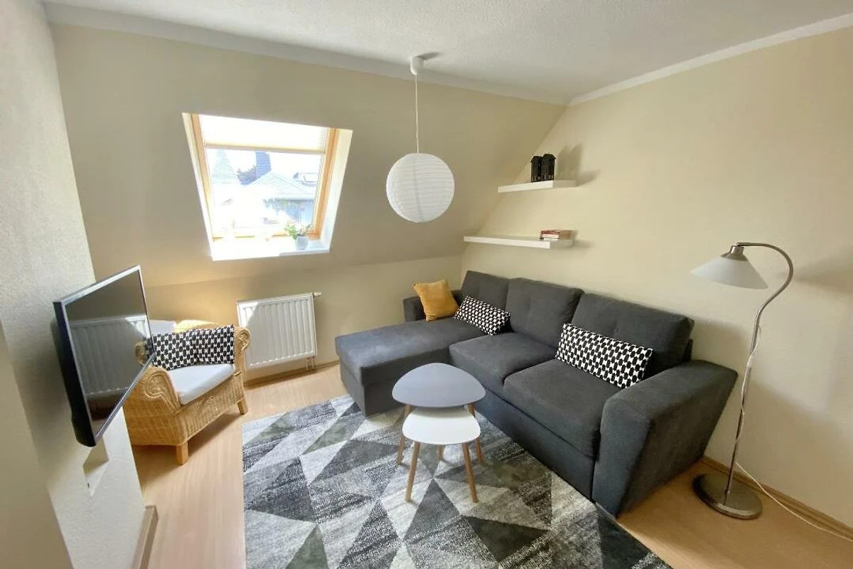 Wir bieten Ihnen eine modern und freundlich eingerichtete Ferienwohnung für bis zu 4 Personen zzgl. Kleinkind (Babybett vorhanden). Die FeWo verfügt über ca. 46 qm Wohnfläche und liegt in einem ruhig gelegenem Mehrfamilienhaus. Eine Sitzecke im Garten steht Ihnen während des Aufenthalts zu Verfügung. Ein PKW-Stellplatz befindet sich vor dem Haus. Haustiere sind leider nicht erlaubt. Wir freuen uns auf Ihren Aufenthalt. Unsere schöne Ferienwohnung befindet sich im Dachgeschoss und verfügt über ca. 46 qm Wohnfläche. Das Wohnzimmer ist mit einem Ecksofa, einem Esstisch, einer Kommode und einem Sessel eingerichtet. Im Schlafzimmer befindet sich ein gemütliches Doppelbett, ein Kleiderschrank und eine Kommode. Die Küche ist modern und komplett eingerichtet, inkl. Backofen, Herd, Kühlschrank, Gefriermöglichkeit und Spülmaschine. Das neue Badezimmer verfügt über eine Dusche und Badewanne, ein WC und einen Waschplatz. Das Badezimmer verfügt über eine Fussbodenerwärmung. Die Bettwäsche und Handtücher sind bereits im Mietpreis enthalten. Internet via W-Lan ist bei uns natürlich kostenfrei.