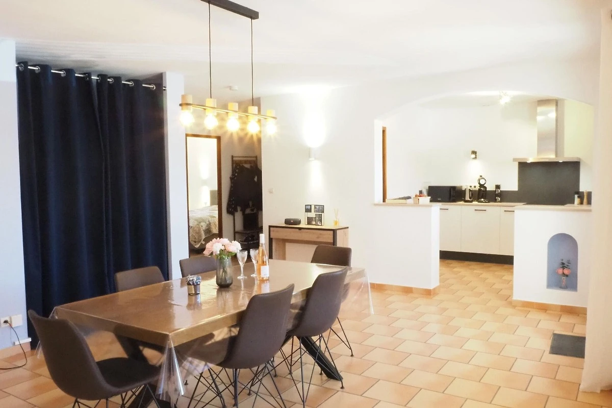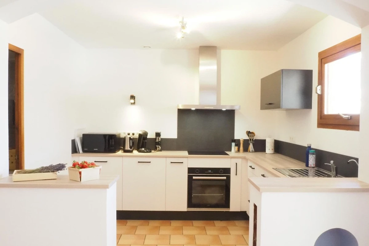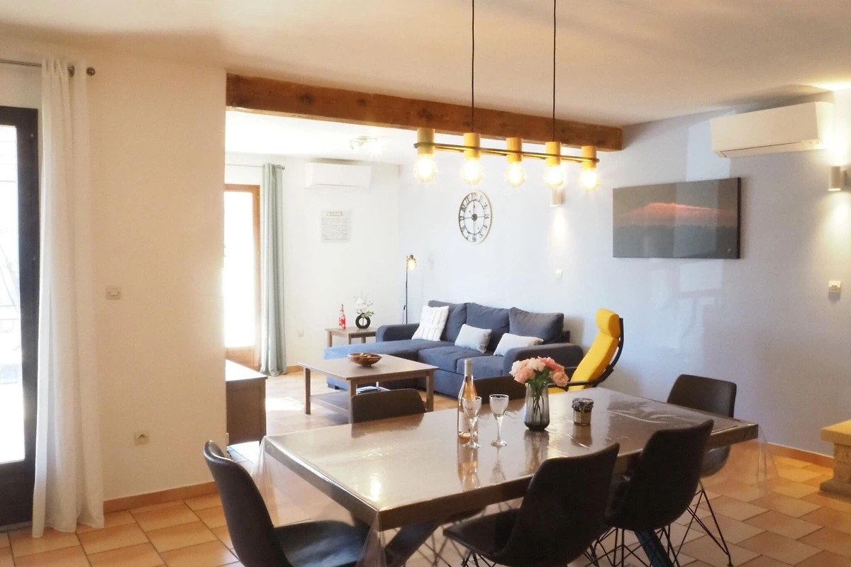 Charmantes, ebenerdiges Ferienhaus, das kürzlich renoviert wurde und nur wenige Schritte vom Zentrum von Vaison-la-Romaine entfernt liegt. Eine schattige Terrasse überragt den privaten Pool um einige Stufen. Eine zweite Terrasse befindet sich auf der Rückseite des Hauses und verfügt ebenfalls über einen Tisch für Ihre Familienmahlzeiten. Das Innere besteht aus einem geräumigen Wohnzimmer mit einer Sitzecke, einem Essbereich und einer voll ausgestatteten, offenen Küche. Die beiden Schlafzimmer teilen sich ein großes Badezimmer mit einer begehbaren Dusche, einem Waschbecken und einer Toilette. Für Ihr Auto steht Ihnen eine Garage zur Verfügung, Sie können es aber auch auf dem Grundstück vor dem elektrischen Tor parken.