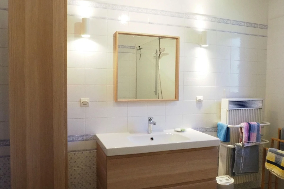 Parterre: (offene Küche(Wasserkocher, Toaster, Kochherd(3 Kochplatten, Ceranfeld), Kaffeemaschine(pads), Backofen, Mikrowelle, Spülmaschine, Kühlschrank, Tiefkühlschrank), Wohn/Esszimmer(TV(keine niederländischen Fernsehsender, keine deutschen Fernsehsender), Esstisch, Dekokamin, Klimaanlage), Schlafzimmer(Doppelbett(160 x 200 cm)), Schlafzimmer(Einzelbett(90 x 200 cm), Einzelbett(90 x 200 cm)), Badezimmer(Dusche(ebenerdige Dusche), Toilette, Föhn))