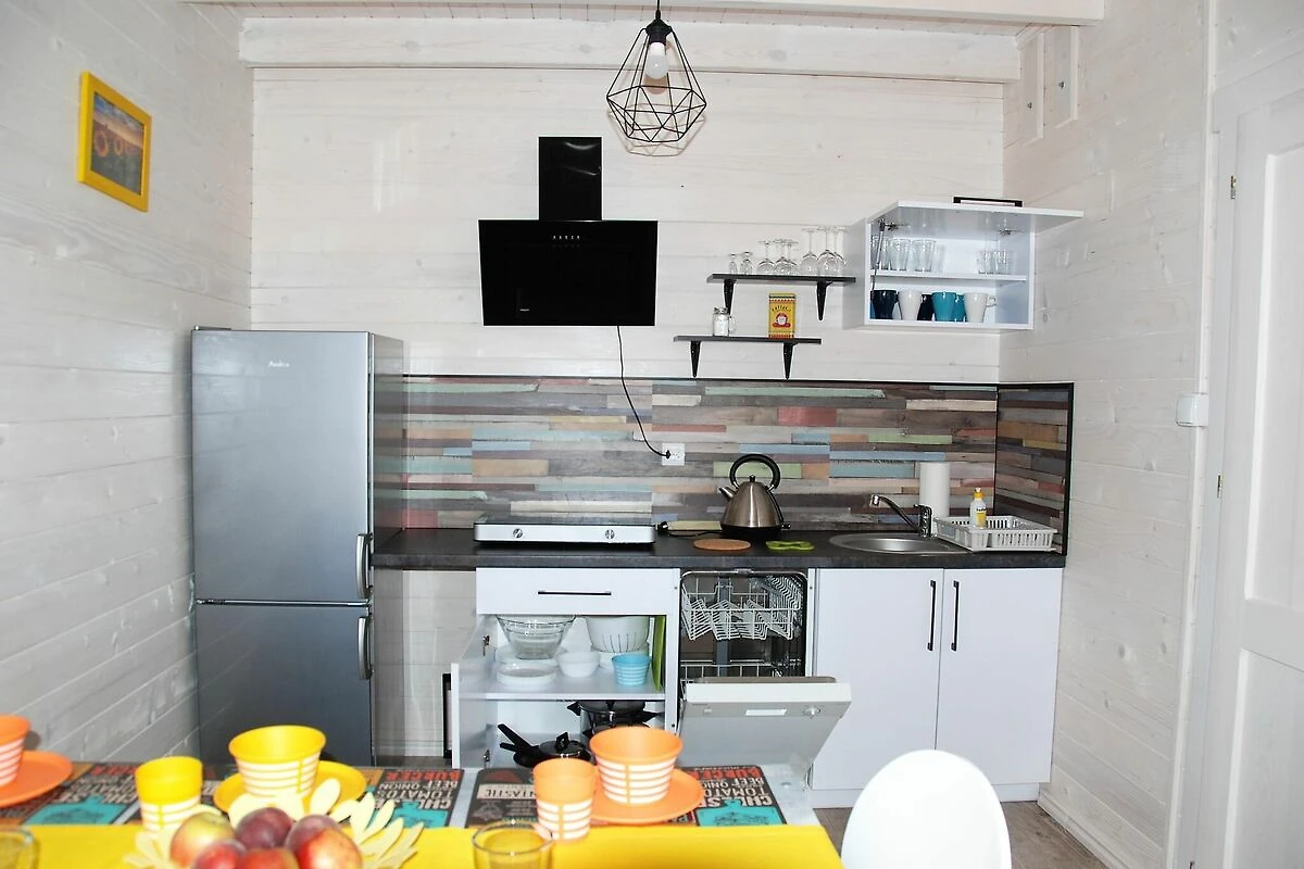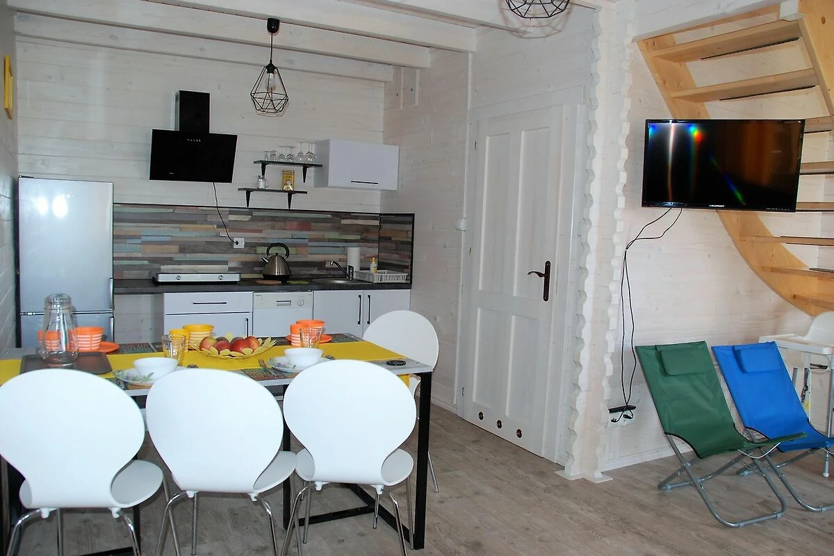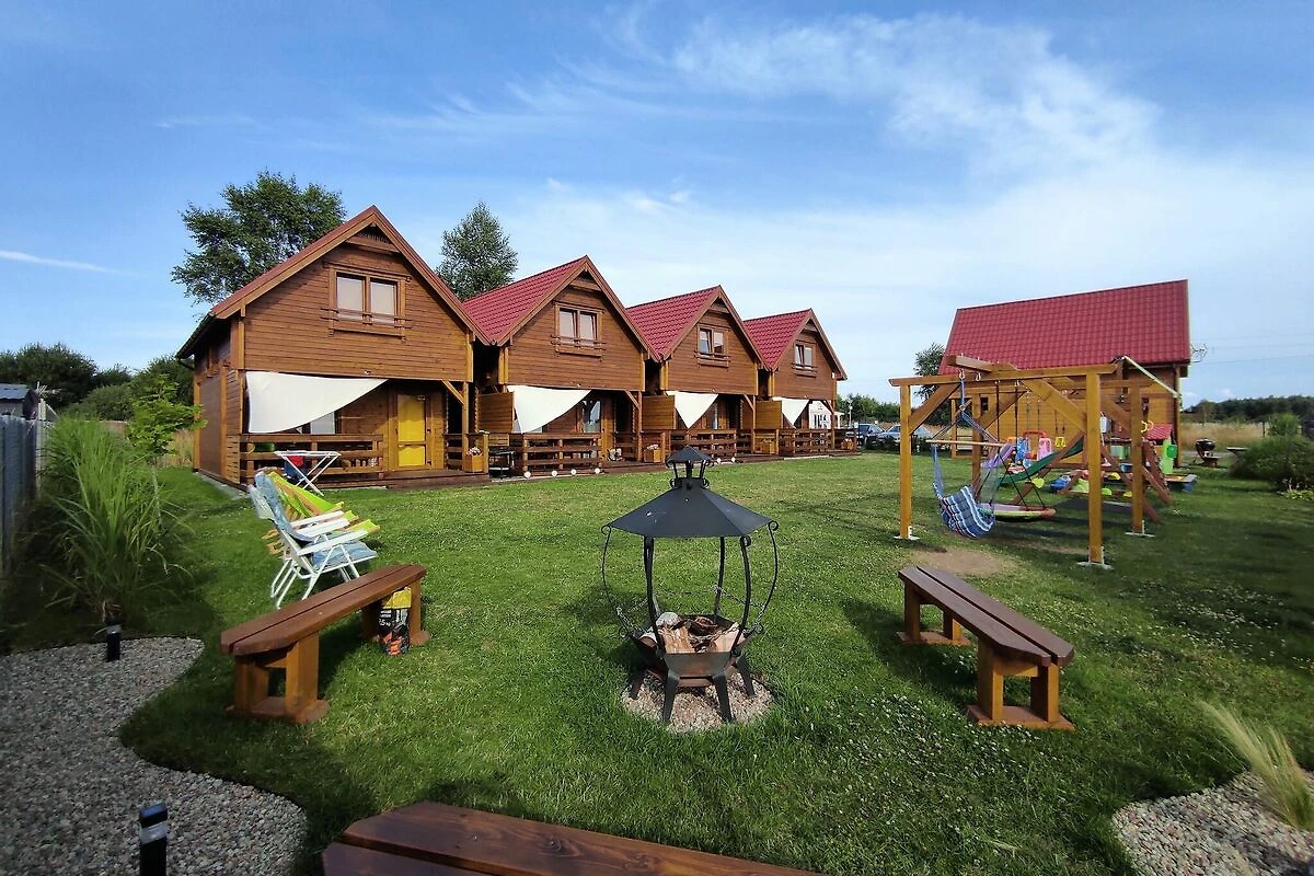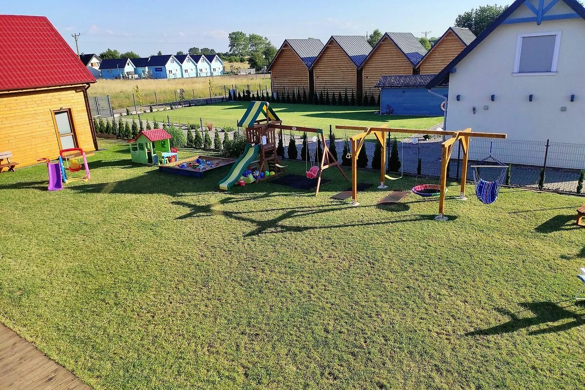 Eine neue Ferienanlage, bestehend aus 4 modernen Ferienhäusern. Eine Hütte kann bis zu 7 Personen beherbergen. Alle Ferienhäuser verfügen über eine große überdachte Terrasse, ein Wohnzimmer mit Kochnische, ein Badezimmer und zwei separate Schlafzimmer. Das Gelände ist eingezäunt und verfügt über eigene Parkplätze. Von unserer Anlage aus sind es nur etwa 10 Minuten zu Fuß zum Strand - nur 600 m. Für Kinder gibt es einen Spielplatz und viel Platz zum Toben und Auspowern in unserem schönen Gelände.