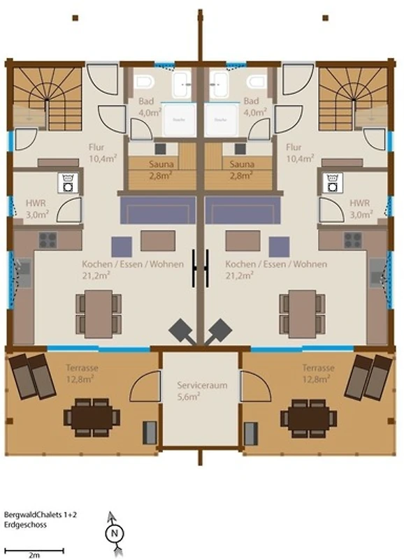 Die Doppelhaushälfte ist durch eine Schall- und Brandschutzwand und auf der Terrasse durch einen Nebenraum getrennt, so dass jeder Mieter seine Privatsphäre geniessen kann.