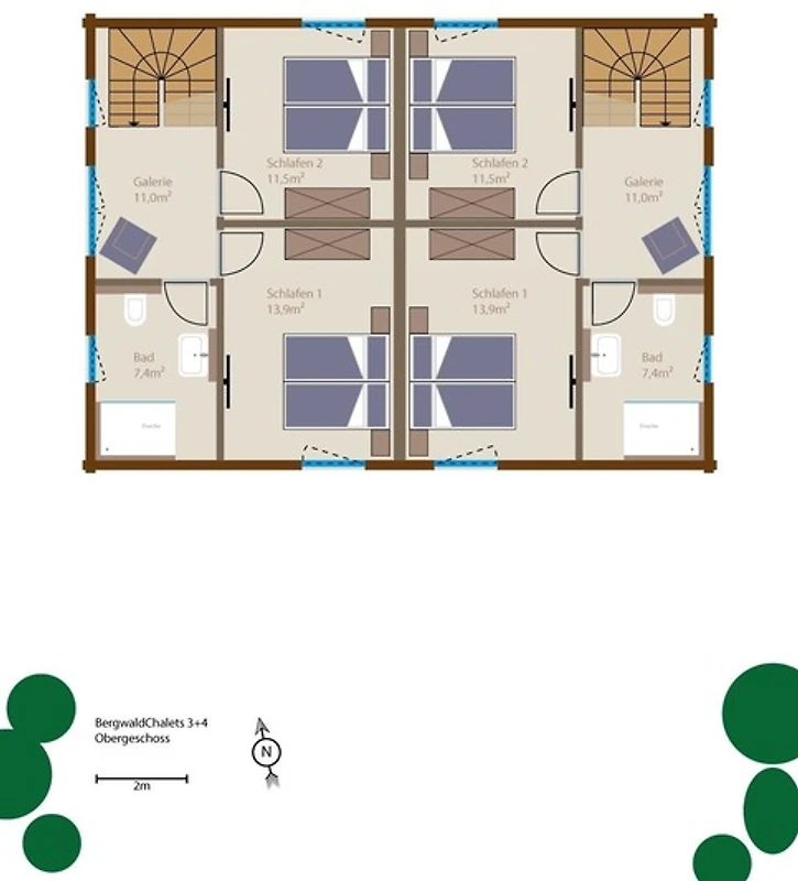 Die Wellnesschalets liegen unterhalb der Komfort- und Tierfreundchalets direkt in und an der Natur.