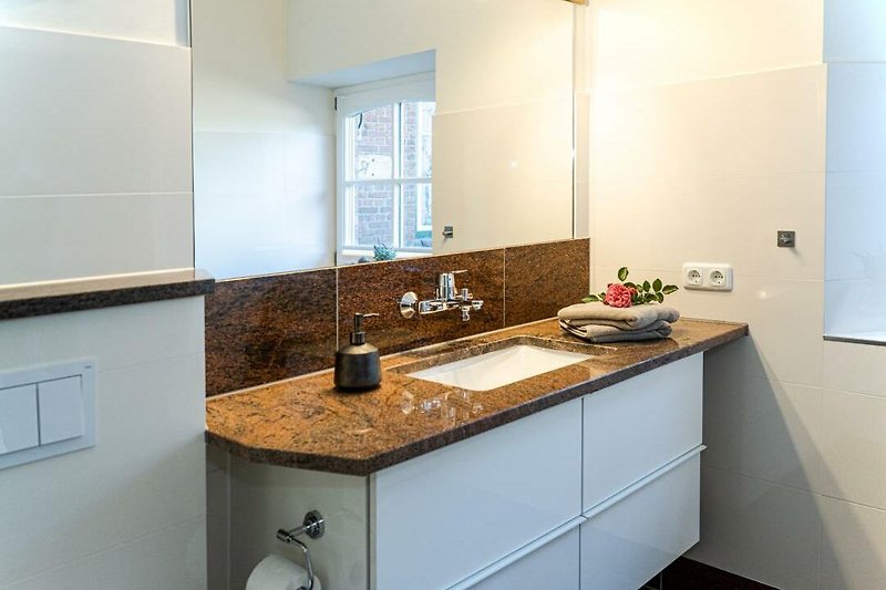 Unsere Ferienwohnung Meer und Muh bietet Ihnen mit kleinem angrenzendem Garten, ausreichend Platz zum Erholen in Ostseenähe. Zudem ermöglicht diese schöne Unterkunft einen einmaligen Blick auf Nachbars Kühe - Landleben pur. Auf den knapp 104 m² finden bis zu vier Personen Platz in der Wohnung. Ein PKW-Stellplatz vor dem Haus, sowie ein separater Eingang ermöglichen Ihnen eine flexible Tagesgestaltung. Damit bei unseren kleinen Gästen keine Langeweile aufkommt, befindet sich vor dem Haus der örtliche Spielplatz. Weiterhin verfügt die Wohnung über eine voll ausgestattete Küche mit angrenzender Terrasse, ein grosszügiges Wohnzimmer mit Couchlandschaft sowie Kamin, zwei Bäder und zwei Schlafzimmer mit Doppelbett. Zusätzlich bieten beide Schlafräume die Möglichkeit Ihr Gepäck in Kleiderschränke und Kommoden zu verstauen sowie einen direkten Zugang zum Balkon.