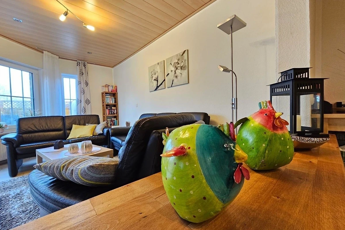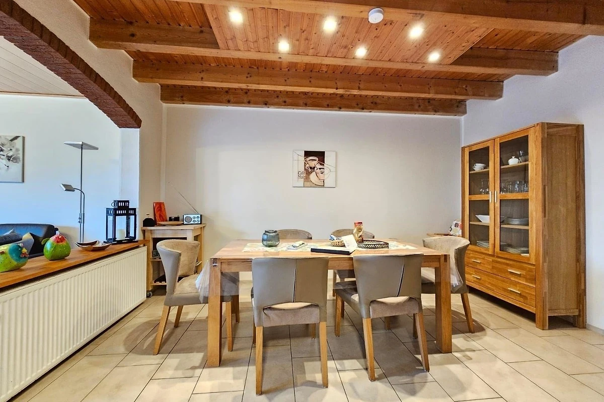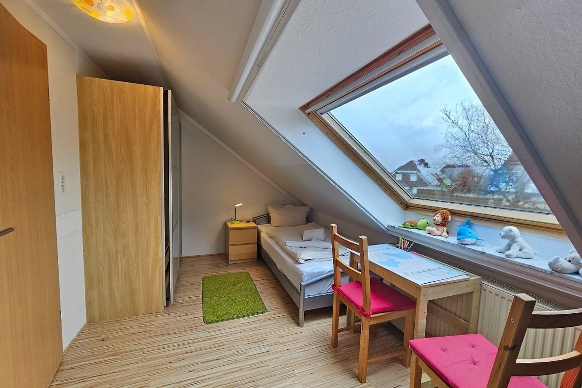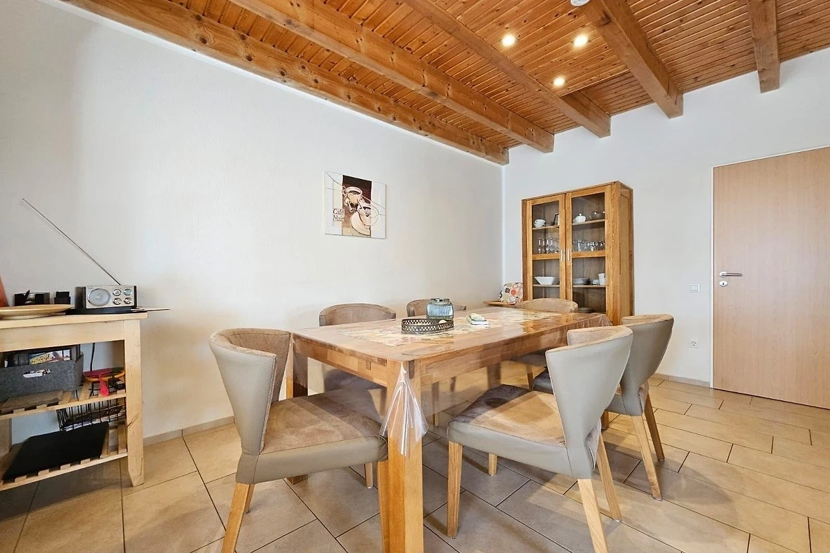 Die Ferienwohnung bietet einen privaten Garten mit einer einladenden Liegewiese und bequemen Gartenliegen. Für Familien steht ein Spielplatz mit Schaukel und Sandkasten zur Verfügung. Ein Holzkohlegrill lädt zu gemütlichen Grillabenden ein. Die markisierte Terrasse ermöglicht entspannte Stunden im Freien. Eine Garage rundet das Angebot ab und sorgt für einen bequemen Aufenthalt.