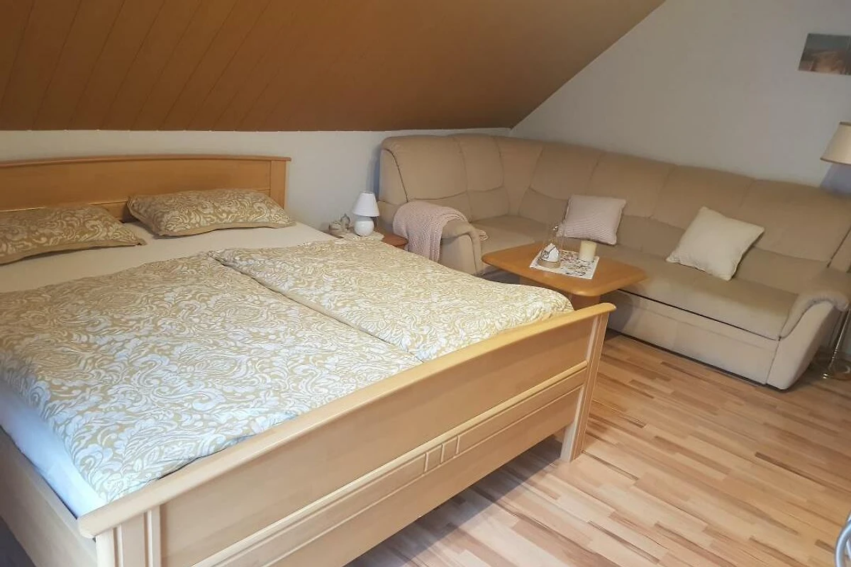 Wir vermieten im OG unseres Einfamilienhauses eine wohnliche Nichtraucherwohnung, bestehend aus einem Wohn-Schlafraum mit gemütlichem Doppelbett, Flachbild-TV und einer Sitzecke mit Couchtisch. Das Badezimmer ist mit Dusche und WC ausgestattet. Bettwäsche sowie Handtücher sind im Mietpreis enthalten. Die Küche beinhaltet eine Sitzgruppe für zwei Personen, einen Backofen mit Kochfeld, einen Kühlschrank und eine Spül- sowie Waschmaschine. Die Nutzung des Internets ist kostenfrei. Im Garten befindet sich ein gemütlicher Gartenpavillon inkl. Grillmöglichkeit. Vorort steht Ihnen ausserdem ein PKW-Stellplatz als auch eine Unter- und Abstellmöglichkeit für Fahrräder zur Verfügung. Das nahegelegene Moorgebiet verleitet zu naturnahen Spaziergängen und Fahrradtouren.