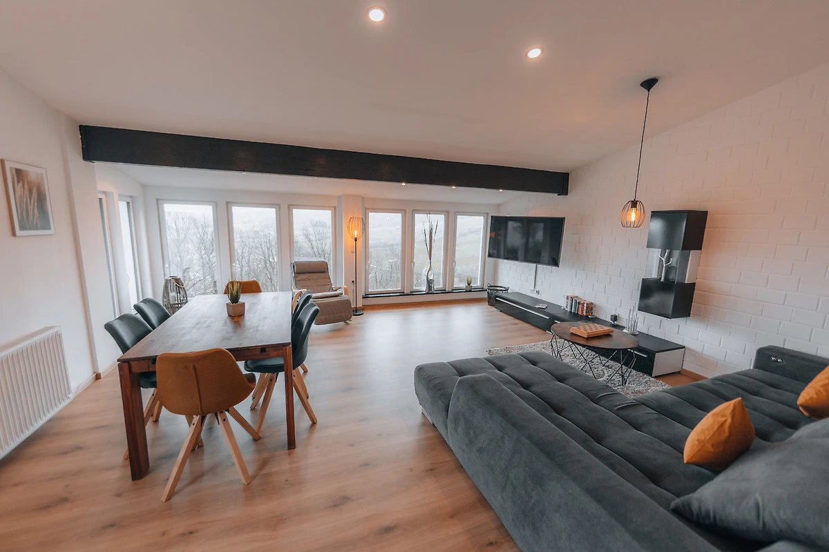 Das Ferienhaus wurde 2022 frisch renoviert & stylisch eingerichtet und befindet sich mitten im Ferienpark Haselbach. An schönen Tagen kann man sich auf eine Aussicht vom Haus bis zu 100 km in die Ferne freuen- in jedem Fall hast du hier einen tollen Blick zum Kreuzberg - Abfahrt „Kanonenrohr“ - Dreitannenlift. Von unserer Terrasse aus hast du zusätzlich noch direkten Blick auf die Kreuzbergschanze. Die liegt nämlich nur ca. 1200 Meter von der Ferienwohnung entfernt (Skisprungschanze Kreuzberg- Haselbach) und ein Fussweg von ca. 15min. führt direkt dort hin.