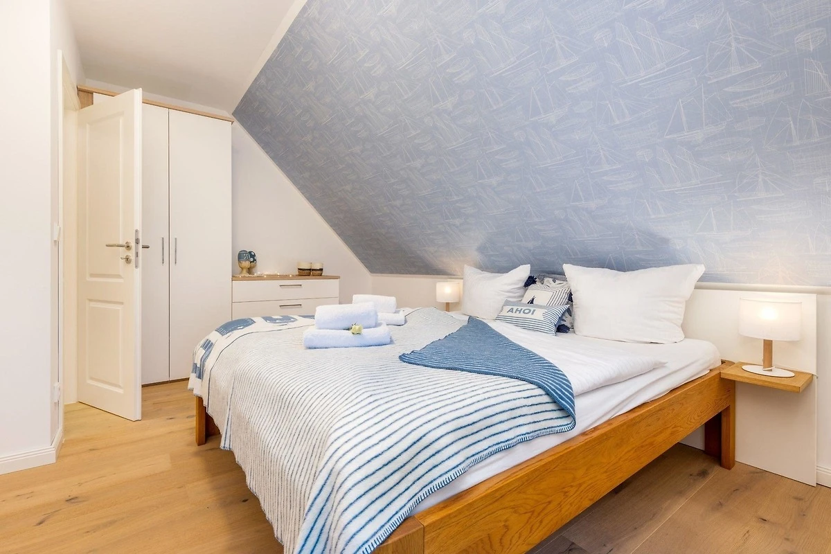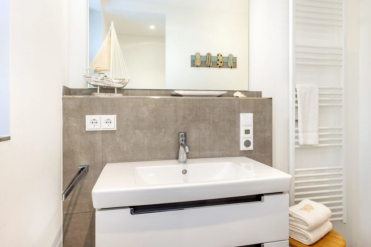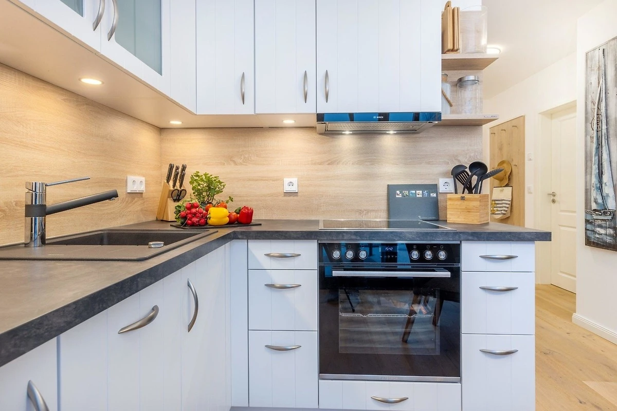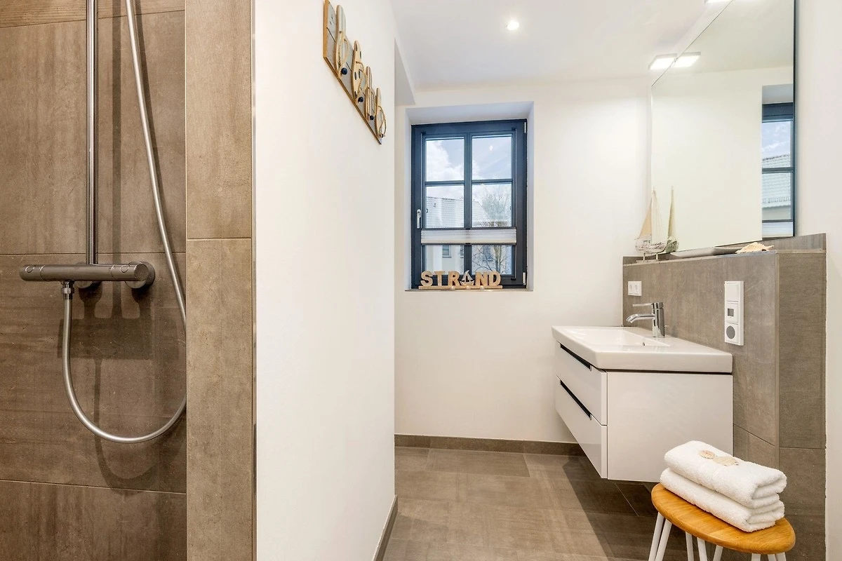 Die Ferienwohnung bietet eine stilvolle und komfortable Unterkunft mit einem durchdachten Raumkonzept. Sie verfügt über zwei Schlafzimmer, in denen ein Doppelbett und zwei Einzelbetten Platz finden. Das Badezimmer ist mit einer bodengleichen Dusche ausgestattet und besticht durch ein Fenster, einen Kosmetikspiegel sowie einen Haartrockner. Die offene Küche ist ein Highlight der Wohnung und bietet moderne Annehmlichkeiten wie einen Geschirrspüler, einen Elektro-/Gasherd, einen Backofen, eine Mikrowelle und zahlreiche Kleingeräte wie einen Toaster und eine Kaffeemaschine. Ein Esstisch lädt zu gemeinsamen Mahlzeiten ein. Die technische Ausstattung umfasst WLAN, einen TV und eine HiFi-Anlage. Für zusätzlichen Komfort sorgt der Kamin/Kachelofen. Praktische Extras wie eine Waschmaschine, ein Bügeleisen sowie ein Erste-Hilfe-Set sind ebenfalls vorhanden. Die Wohnung ist allergikergeeignet und bietet einen Parkplatz. Brettspiele und Fliegengitter sorgen für zusätzlichen Wohnkomfort.
