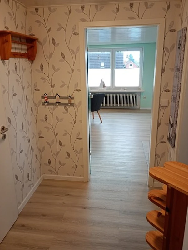 Die FeWo Nordlicht im Obergeschoss bietet einen grossen, hellen, offenen Wohn- Essbereich mit Küchenzeile, gemütlicher Essecke, Sofa, Sessel und Smart-TV inkl. DVD-Player.