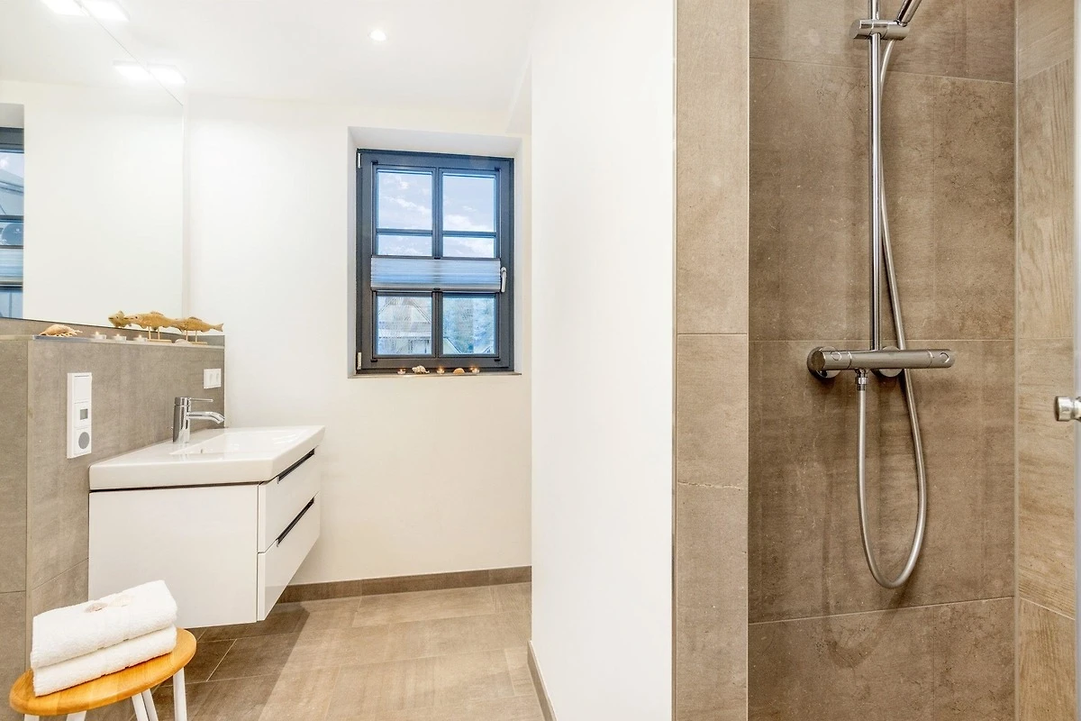 Die Ferienwohnung bietet eine freundliche und moderne Atmosphäre, ideal für einen unvergesslichen Aufenthalt. Sie umfasst zwei Schlafzimmer, die mit einem Doppelbett und zwei Einzelbetten ausgestattet sind, sowie ein Badezimmer mit bodengleicher Dusche und Fenster. Die offene Küche überzeugt durch ihre umfassende Ausstattung, inklusive Geschirrspüler, Elektro-/Gasherd, Backofen, Mikrowelle, Kühlschrank und Kaffeemaschine. Ein komfortabler Esstisch lädt zu gemeinsamen Mahlzeiten ein. Der grosszügige Wohnbereich mit Kamin/Kachelofen und HiFi-Anlage sorgt für entspannte Abende. Die Wohnung ist allergikergeeignet und bietet zahlreiche Annehmlichkeiten wie WLAN, Waschmaschine, Haartrockner und Bügeleisen. Ein Parkplatz ist ebenfalls vorhanden, und ein Starterset mit Gewürzen sorgt für kulinarische Freude. Zudem stehen Brettspiele für unterhaltsame Stunden bereit. Die Ferienwohnung ist der perfekte Rückzugsort für Familien und Paare, die Ruhe und Komfort suchen.
