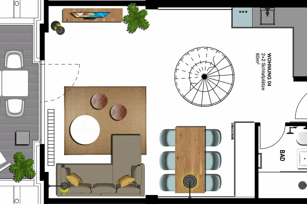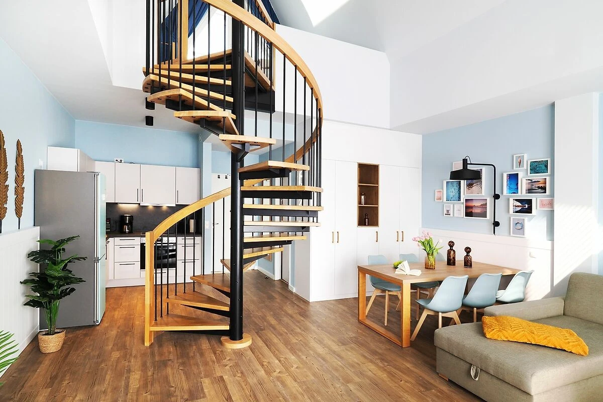 Entspannen Sie auf Ihrem privaten Balkon auf der Seebrücke Heringsdorf! Die 2023 renovierte, lichtdurchflutete Ferienwohnung ist auf zwei Ebenen, mit einer Empore auf der oberen Etage konzipiert und vom darunter liegenden Wohnbereich aus über eine Treppe zu betreten. Sowohl der separate Schlafbereich auf der Empore mit dem Boxspringdoppelbett, als auch das gemütliche Eckschlafsofa im Wohnzimmer mit Smart-TV bieten Ihnen angenehme Nächte. Neben dem komfortablen Esstisch im Wohnbereich finden Sie auch genügend Platz für Ihre Garderobe und haben einen direkten Ausgang zum Balkon mit Sitzgarnitur, wo Sie den herrlichen Weitblick auf die Ostsee genießen können. Die offene Küchenzeile im Wohnraum ist mit Ceranfeld, Backofen, Geschirrspüler, Kühl-Gefrierkombination, Spülmaschine, Toaster, Mikrowelle, Wasserkocher und alle erforderliche Küchenutensilien ausgestattet. Das Badezimmer überzeugt mit einer ebenerdigen Dusche, einem Waschbecken, einem WC sowie einem großen Spiegel mit Kosmetikspiegel. Für Ihren Komfort sind Bettwäsche, Handtücher, Reinigungs- und Waschmittel als Erstausstattung inklusive. Der WLAN-Zugang ist kostenfrei nutzbar. Auf Wunsch stellen wir ein Kinderreisebett und einen Kinderhochstuhl gegen einen Aufpreis zur Verfügung. Vor dem Haus gibt es nur Be-und Endladeparkplätze, als Alternative bieten wir für das örtliche Parkhaus in Heringsdorf ermäßigte Parkkarten gemäß aktueller Preise. Die Parkkarte erhalten Sie bei Anreise in unserem Servicebüro. Haustiere sind in dieser Ferienwohnung herzlich willkommen, hierfür berechnen wir Gebühr gemäß aktueller Preise. Im Untergeschoss der Seebrücke steht Ihnen ein abschließbarer Fahrradraum sowie ein kleiner Waschraum mit Waschmaschine, Trockner, Bügelbrett und Bügeleisen kostenfrei zur Verfügung.