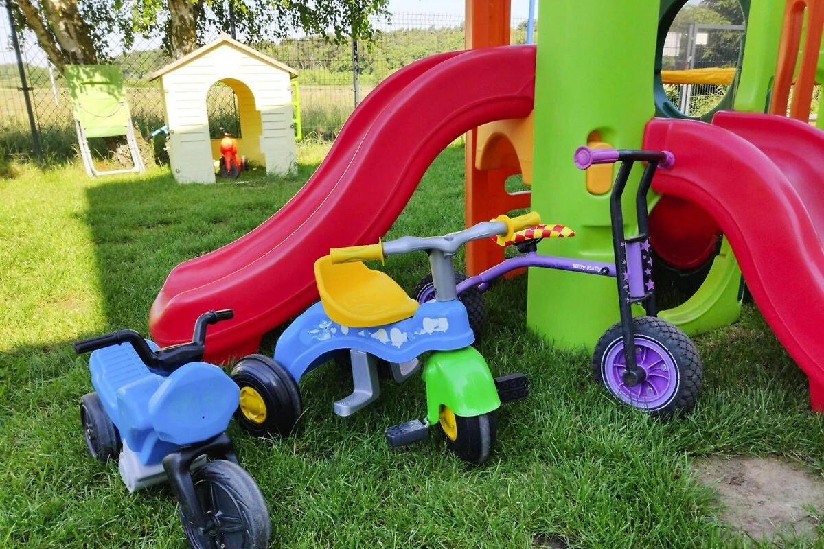 Auf dem Gelände gibt es Grillgeräte (gemauerte Grillkamine), einen Gartenpavillon, einen Fahrradverleih (kostenlos) und einen Parkplatz (1 Platz/Haus). Nach vorheriger Reservierung stehen Ihnen ein Babybett und ein Hochstuhl zur Verfügung. Kinder freuen sich über das beheizte Sommerschwimmbad und den attraktiven Spielplatz.