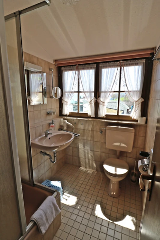 - Bad mit Dusche, Waschbecken, WC und Föhn