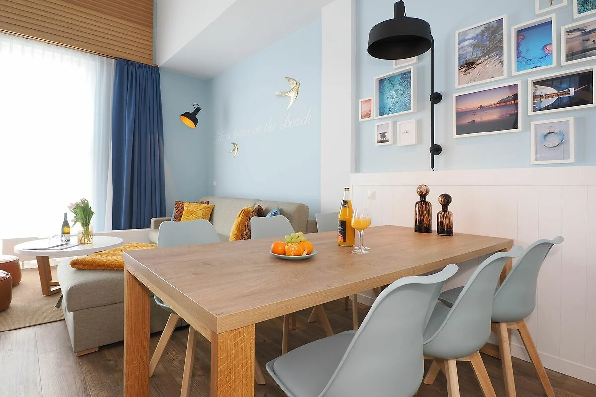Die Lage ist top. Moderne, stylische Wohnung. Gut eingerichtete Küche. Bequeme Betten. Keine Parkplätze in der Nähe, nur be- und entladen möglich. Alle Wohnungen befinden sich im ersten Stock über der Shopping Mall und sind nur über eine Treppe erreichbar. Strandpromenade vor der Haustür. Wir empfehlen die Kaiservillen in Heringsdorf gerne weiter.