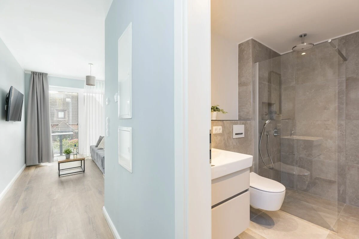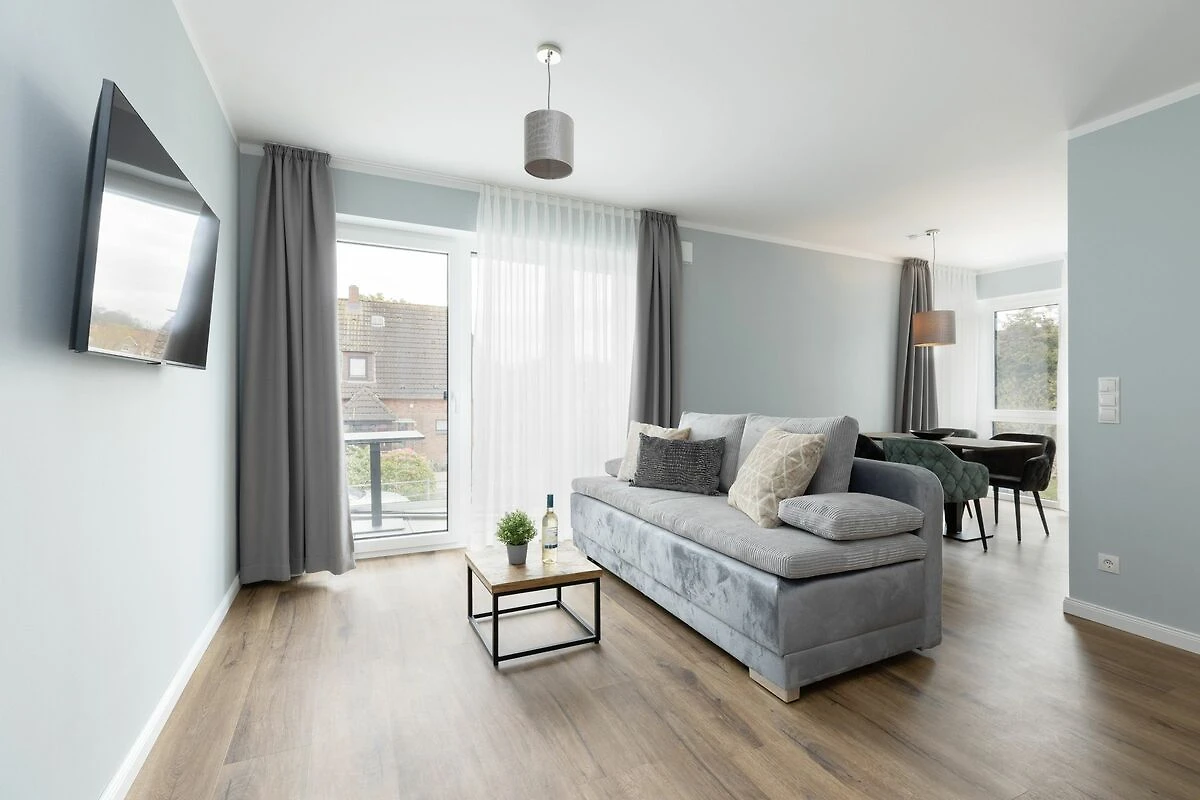 Die etwa 50 qm große Nichtraucher-Ferienwohnung "Suite 3" im Appartementhaus "Sturmfrei" bietet Komfort und Gemütlichkeit in Erdgeschoss-Lage. Mit einer Inneneinrichtung, die Farben des Himmels, der Wolken, des Sands und des Meeres aufgreift, spürt ihr überall das maritime Flair. Eine durchdachte Raumaufteilung mit einem längs geschnittenen Flur führt zu den verschiedenen Wohnbereichen und garantiert eine angenehme Wohnatmosphäre. Außenrollläden sorgen tagsüber für Schatten und nachts für vollständige Dunkelheit, was eure Ruhe unterstützt. Die Terrassentür bietet direkten Zugang zu einem kleinen, sonnigen Außenbereich, ideal für entspannte Abende oder morgendliche Frischluft. In der Wohnung gibt es kostenfreies WLAN (bei Störungen kein Anspruch auf Erstattung oder Ersatz).