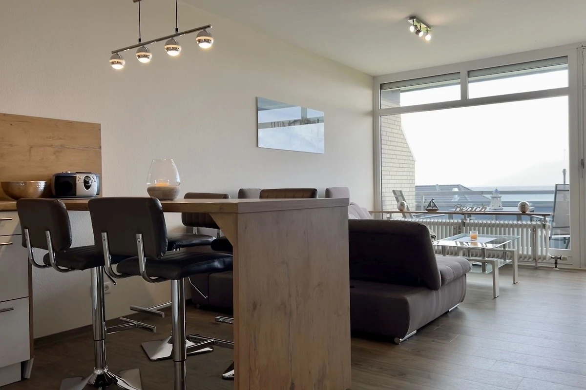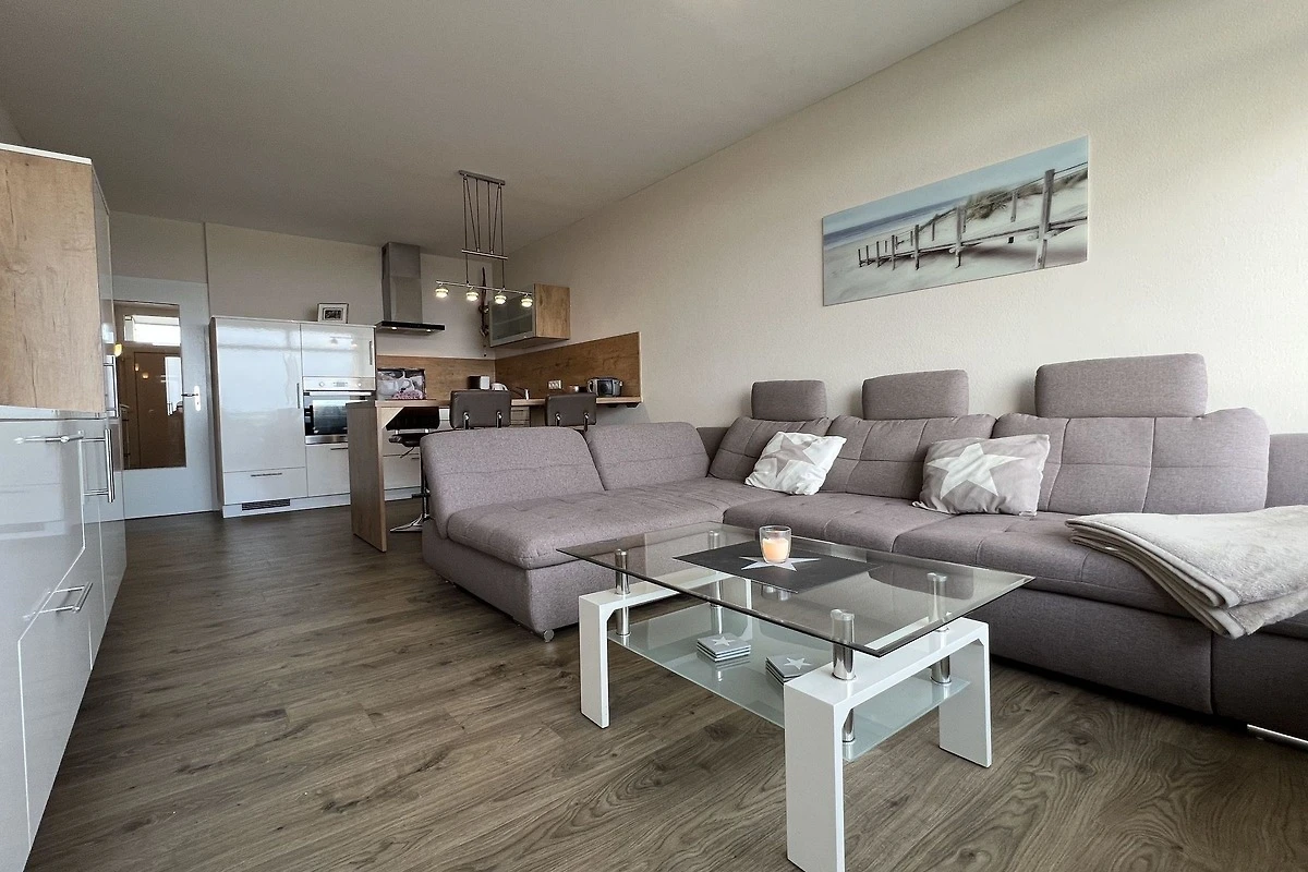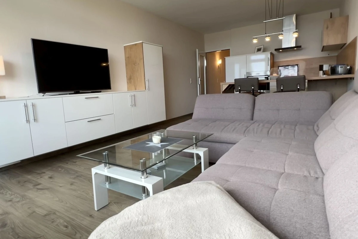 - Wohnzimmer mit integrierter voll ausgestatteter Küche und Essplatz für 4 Personen