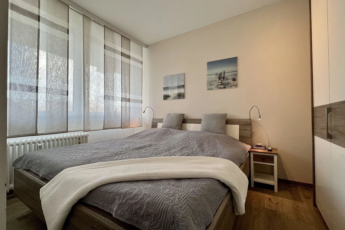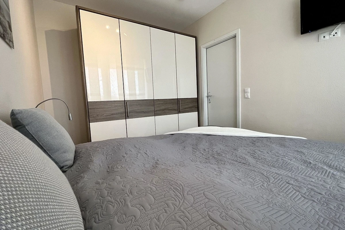 - Schlafzimmer mit Doppelbett und Kleiderschrank