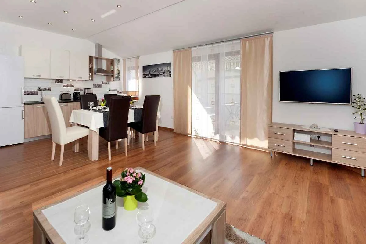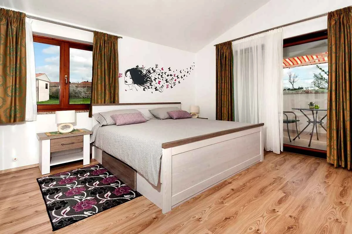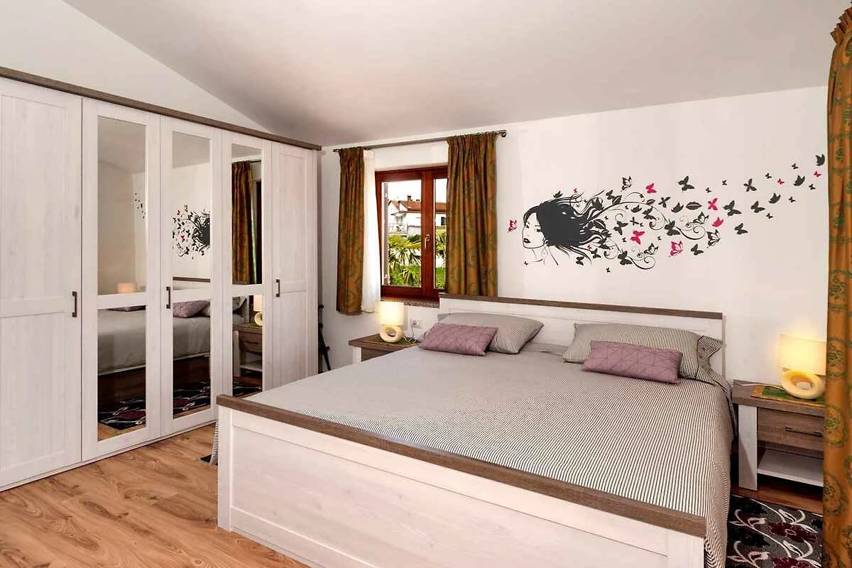 Nova Vas/Poreč. Die Ferienwohnung befindet sich auf einem 400 qm grossen, geschlossenen Gartengrundstück, von einem Zaun begrenzt. Der Vermieter wohnt ständig im Haus, nutzt jedoch einen separaten Eingang. Die Zufahrt erfolgt über eine Nebenstrasse (asphaltiert). Parkplatz (für 1 Pkw) auf dem Grundstück.