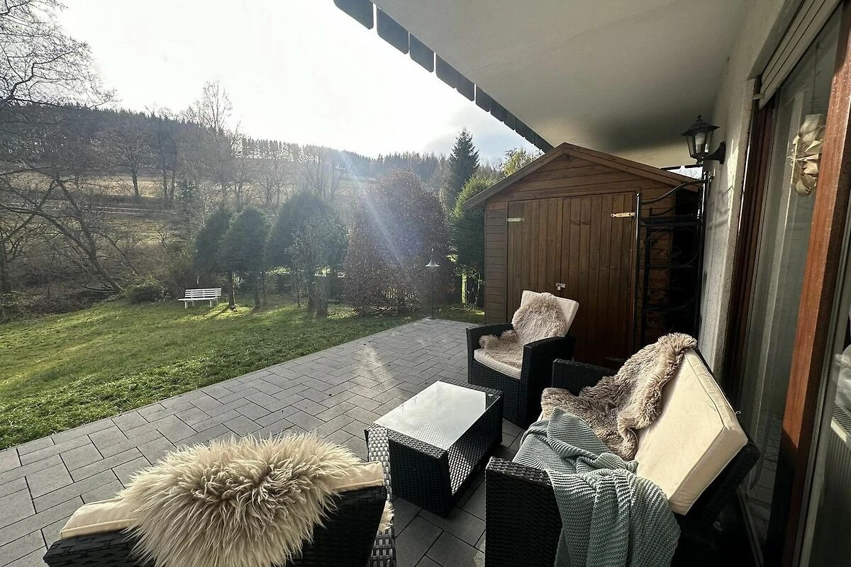 Die gemütlich eingerichtete Wohnung von ca. 45 m2 befindet sich in einer kleinen Anlage, die an einen Berg gebaut ist. Es ist ruhig am Waldrand von Niedersfeld gelegen. Die Unterkunft befindet sich im Untergeschoss und ist über eine Treppe erreichbar. Von der Wohnung aus können Sie direkt in den Garten gehen und die Aussicht auf die schöne Berglandschaft genießen. Das geräumige, offene Wohnzimmer mit Küche ist mit einer Schlafcouch und einem Sitzbereich ausgestattet. An kalten Winterabenden können Sie den gemütlichen elektrischen Kamin genießen. Für die Kinder wurde eine angenehme Spielecke eingerichtet. Die Küche ist mit einem großen Kühlschrank mit Gefrierfach, einem Cerankochfeld, einem Kombibackofen und einem Geschirrspüler ausgestattet. Das Schlafzimmer hat ein Doppelbett mit viel Stauraum. Das geräumige Badezimmer hat eine Dusche, ein Waschbecken und eine Toilette. Stellen Sie sich vor, wie Sie an den langen Sommerabenden mit einem Glas Wein auf der großzügigen Terrasse sitzen! Und im Winter im Schnee mit einem Glas Glühwein! Es gibt einen überdachten Abstellraum für Skier, Fahrräder, Kinderwagen und Trolleys. Ein Hund ist nach Absprache willkommen! Niedersfeld ist der ideale Ausgangspunkt zum Wandern, Radfahren und Wintersport und liegt in der Nähe von Winterberg. Es gibt ein gemütliches Dorfzentrum mit Bäckerei, Gemüseladen und Blumengeschäft. Das Dorf hat viele schöne Fachwerkhäuser, umgeben von grünen Wiesen und bunten Wäldern. In zwanzig Minuten erreichen Sie zu Fuß den Hillebachsee, einen Bergsee mit Strand, an dem Sie zahlreiche Aktivitäten wie Schwimmen, Volleyball, Angeln und Wasserski ausüben können. Ideal für einen Tag der Entspannung oder Sport im Sommer. In der Nähe liegt auch die Hochheide, die größte Bergheide Nordwestdeutschlands, die sich im Spätsommer wunderschön lila färbt. Im Winter ist es ein Walhalla für alle, die den Schnee lieben: Langlauf, Rodeln, Skifahren auf dem Ettelsberg in Niedersfeld oder dem schneesicheren Winterberg. 10 Minuten mit dem Auto und Sie sind auf den schönsten Pisten.