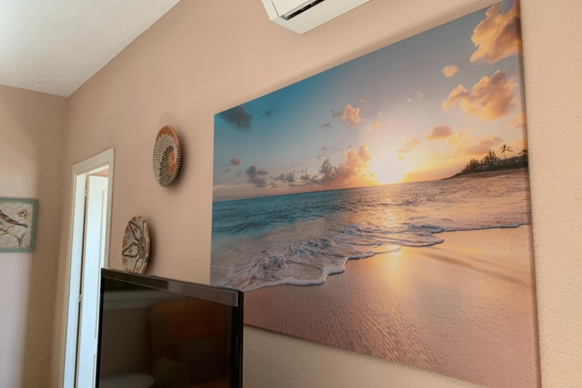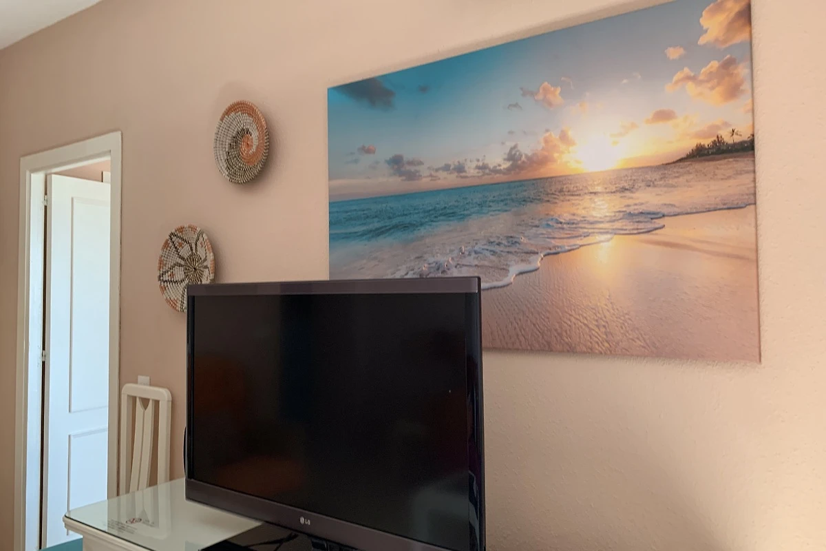 2 Klimaanlagen im Wohnzimmer und Schlafzimmer, Heizung und alles elektrisch. Geräumiger Platz für eine Strandwohnung.
