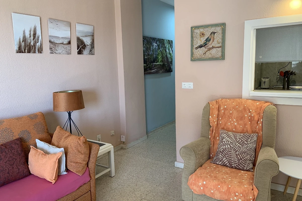 Strandapartment mit 1 Schlafzimmer, Bad, separater Küche, 10 m² Terrasse und den ganzen Tag sonnig. Gemeinschaftspool das ganze Jahr geöffnet und großer Garten. Alle Dienstleistungen in der Umgebung ohne Auto erreichbar. Restaurants, Geschäfte. Direkte Verbindung zum Flughafen mit Haltestelle. Einfache Anreise.