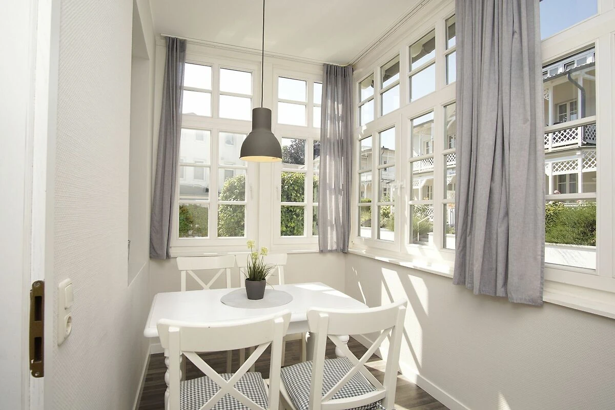 Die Villa Maria ist eines der beliebtesten Häuser Göhrens. Die historische, liebevoll sanierte Bäderstilvilla befindet sich in einer zentralen aber dennoch ruhigen Lage in der Ortsmitte vom Ostseebad Göhren. Das Haus verfügt über vier moderne Ferienwohnungen, die mit viel Liebe zum Detail eingerichtet sind. Durch die verglasten Loggien sind die gemütlichen und hellen Ferienwohnungen zu jeder Jahreszeit lichtdurchflutet und bieten viel Platz für Ihren wohlverdienten Urlaub. Genau die richtige Unterkunft für Familien.