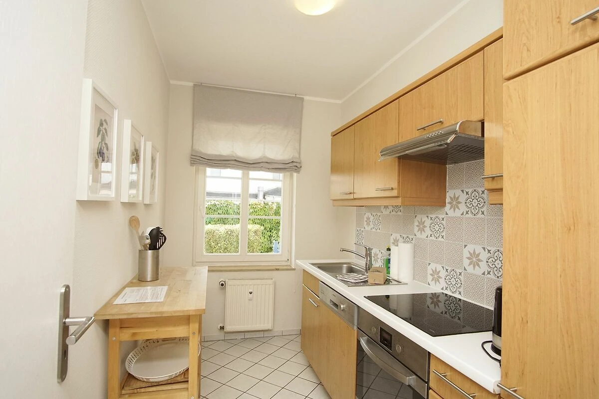 KÜCHE // separate Küche, 4-Platten Herd, Spülmaschine, Kühlschrank mit Gefrierfach, Backofen, Toaster, Wasserkocher, Kaffeemaschine, reichlich Besteck, Geschirr und Küchenutensilien ++