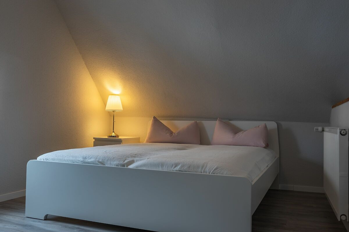 SCHLAFEN// drei separate und offene Schlafzimmer mit Flachbild-TV 2 im OG, welche über eine enge und etwas steile Wendeltreppe zu erreichen sind, eines mit Doppelbett und eines mit einem Tandembett, Schlafzimmer im EG mit Doppelbett ++