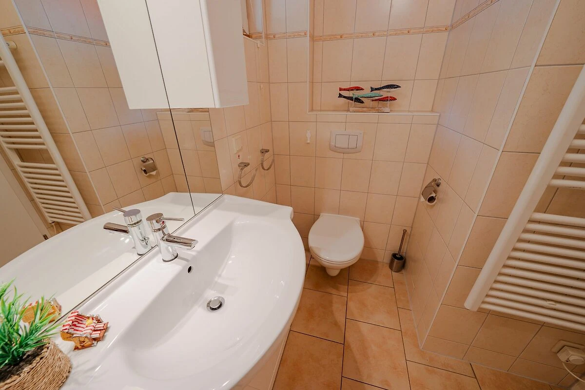 Als Gäste in dieser Ferienunterkunft haben Sie und Ihre Mitreisenden während Ihres kompletten Aufenthaltes freien Eintritt (täglich bis zu 3 Stunden) in das AHOI! - Erlebnisbad mit großer Saunalandschaft im Nachbarort Sellin. Im Objekt selber befindet sich KEINE Sauna und KEIN Schwimmbad.
