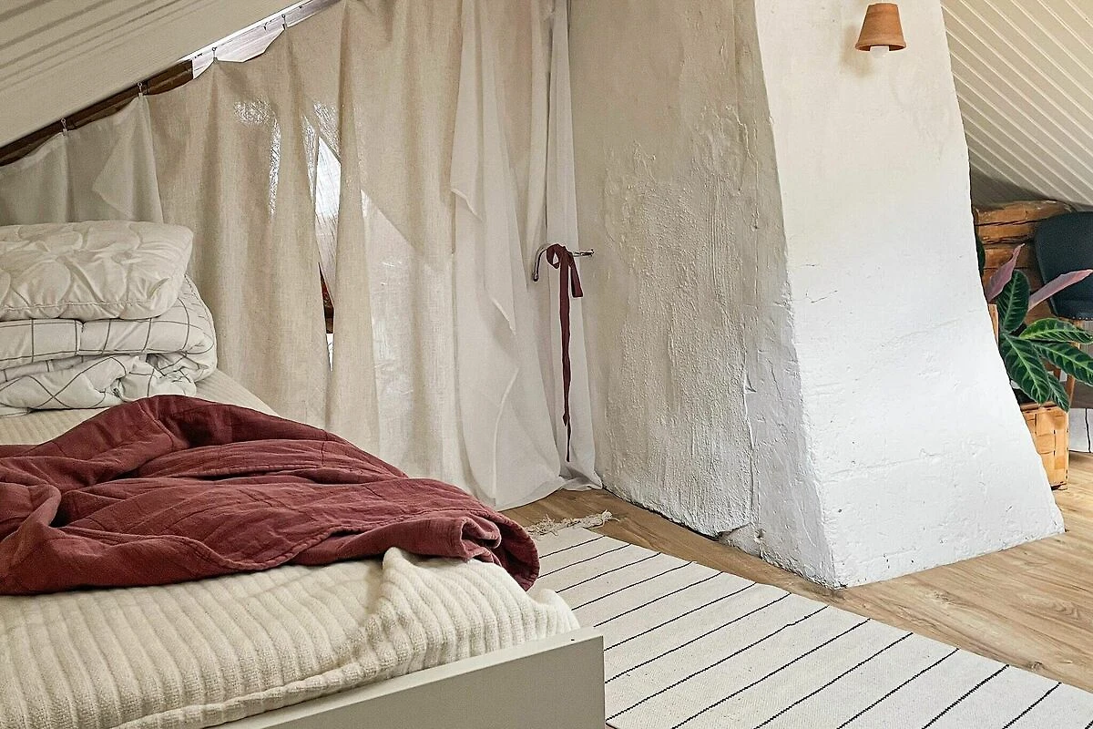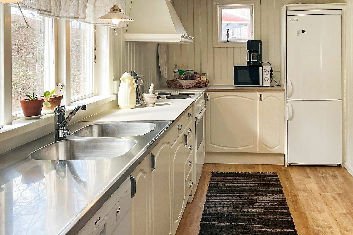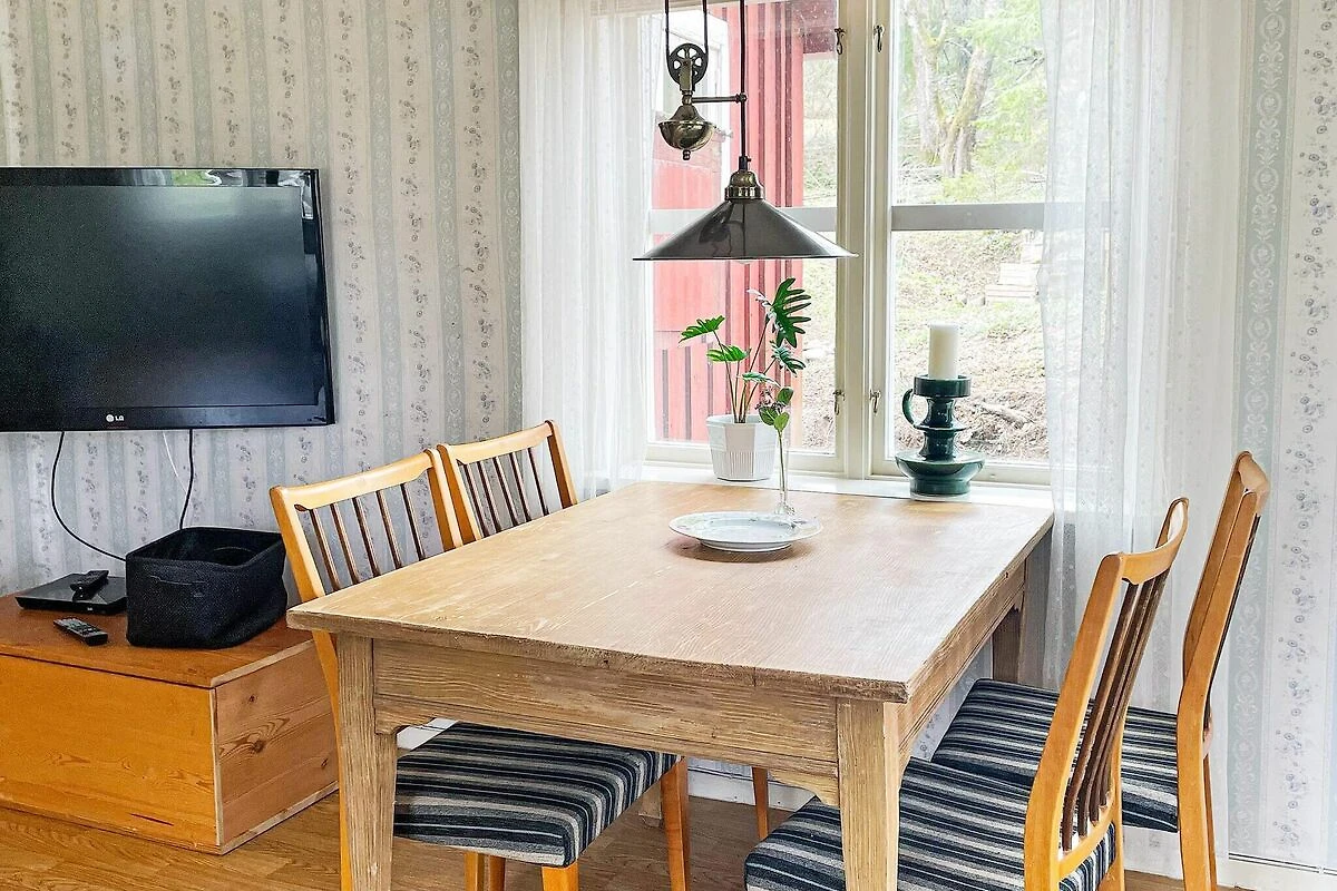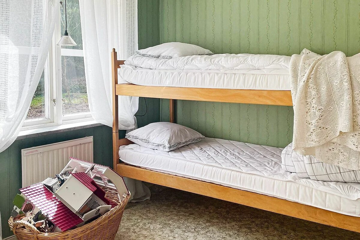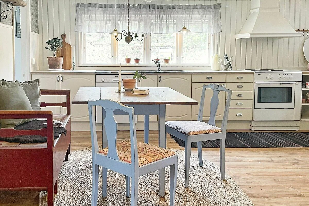 Willkommen in diesem komfortablen Ferienhaus, dessen Wurzeln bis ins späte 19. Jahrhundert zurückreichen. Das Haus hat aber eine renovierte Küche und ein saniertes Bad von 2023, beide Räume entsprechen somit heutigem Standard. Ringsum gibt es neun gute Mountainbike-Strecken für den aktiven Urlauber zu entdecken. Das geschmackvoll eingerichtete Ferienhaus ist komplett ausgestattet, sodass Sie gemeinsam kochen, essen und es sich gemütlich machen können. An kühlen Abenden können Sie im Kaminofen im Wohnzimmer ein wärmendes Feuer anzünden und sich evtl. bei einem guten Film entspannen. Die Unterkunft erstreckt sich über zwei Ebenen. Den Eingang finden Sie auf der bezaubernden, verglasten Veranda des Hauses. Von dort haben Sie Zutritt in die Diele. Weiter geht es in die helle, zeitgemäß ausgestattete Küche mit Küchentisch. Natürlich gibt es einen Elektroherd, aber wenn Sie möchten, können Sie auch den alten Holzherd zum Kochen nutzen. Das Badezimmer von 2023 ist ansprechend mit WC, Dusche und Waschbecken ausgestattet. Zudem praktische Waschküche im Haus mit separatem Eingang und kleiner Waschmaschine. Großes Schlafzimmer mit Doppelbett (140 cm Breite), einem Etagenbett (90 + 90 cm) und einem schönen Kachelofen (nicht in Gebrauch). Zudem gemütliches Wohnzimmer im Erdgeschoss mit Esszimmermöbeln, Sofa und funktionierendem Kamin. Über die steile Treppe gelangen Sie hinauf zur zweiten Ebene. Dort befindet sich ein Zimmer mit einem Juniorenbett und einer ausziehbaren Schlafcouch (80+80 cm). Dachschrägen an den Seiten, in der Raummitte jedoch normale Deckenhöhe. Ein Schlafzimmer mit zwei Einzelbetten (je 80 cm). Das Ferienhaus verfügt über insgesamt 8 Betten plus 1 Juniorenbett, aber nur über ein Badezimmer. Wenn Sie also luftig wohnen möchten, ist das Haus besser für Familien mit 6 Personen geeignet. Wunderschöner Garten neben einem fantastischen Wald, der schöne Spazierwege, Beeren und Pilze bietet. Genießen Sie die Feuerstelle im Garten und grillen Sie Ihr Abendessen, während die Kinder in der Umgebung spielen. In der näheren Umgebung findet man diverse Bauerhöfe und Kuhweiden sowie viel Natur. Es ist nur knapp 1 km zum nächsten Badeufer am See Kroksjön. Auch Isaberg ist nicht weit entfernt und bietet alles, von der Höhenbahn über Rodelbahnen, Wassersportverleih bis hin zum Lift für Fahrräder und Ski im Winter. Über den Mountainbikestrecke gelangt man in nur fünf Minuten hinunter zum Isaberg. Die 30 km entfernte Wildweststadt High Chaparal zieht viele abenteuerlustige Familien an. Besuchen Sie das Gekås in Ullared (90 km) um zu schoppen. Zusammenfassend eine echte Sommeridylle auf dem Lande, mit vielen spannende Aktivitäten in der Umgebung.