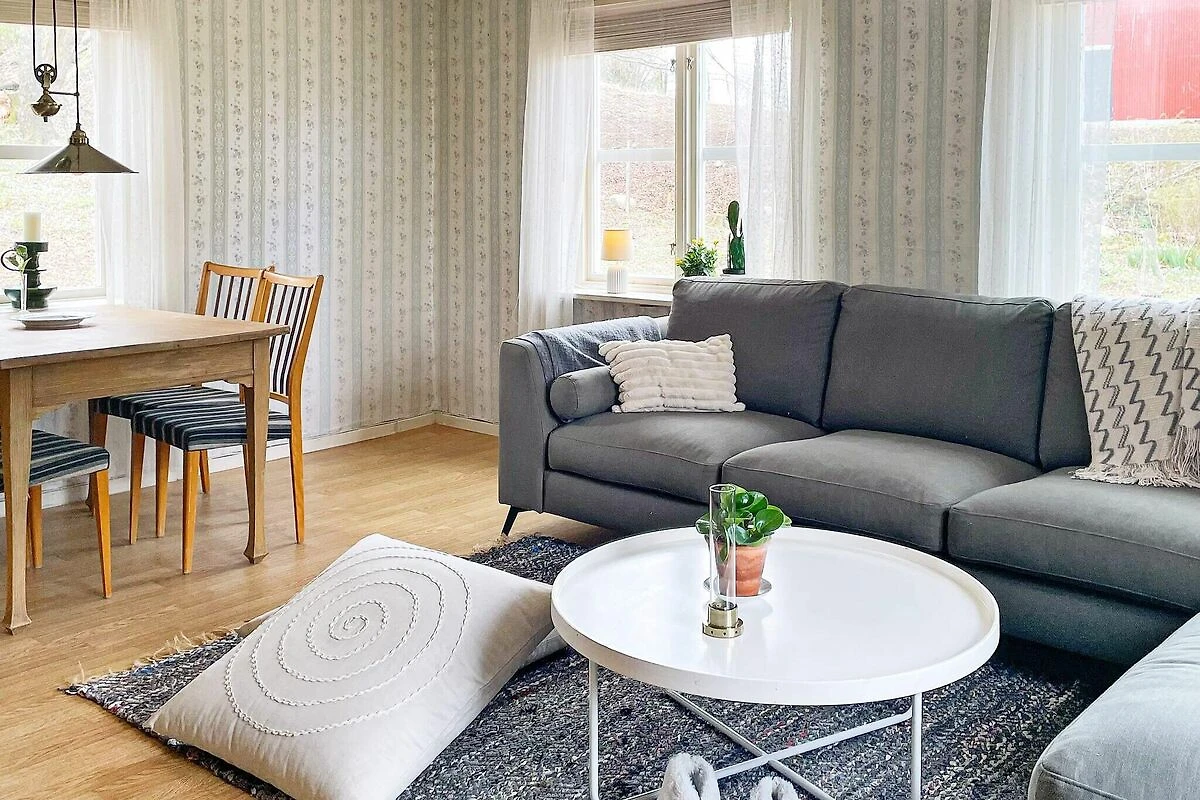 Das Haus war gemütlich und gut ausgestattet, Wir haben die durchdachten Details, wie die Feuerstelle im Garten für Abendbarbecues, sehr geschätzt, Es war zwar ein wenig eng mit acht Personen, aber machbar, Nur eine kurze Fahrt nach Isaberg für einige lustige Outdoor-Aktivitäten, was ein großer Bonus war!