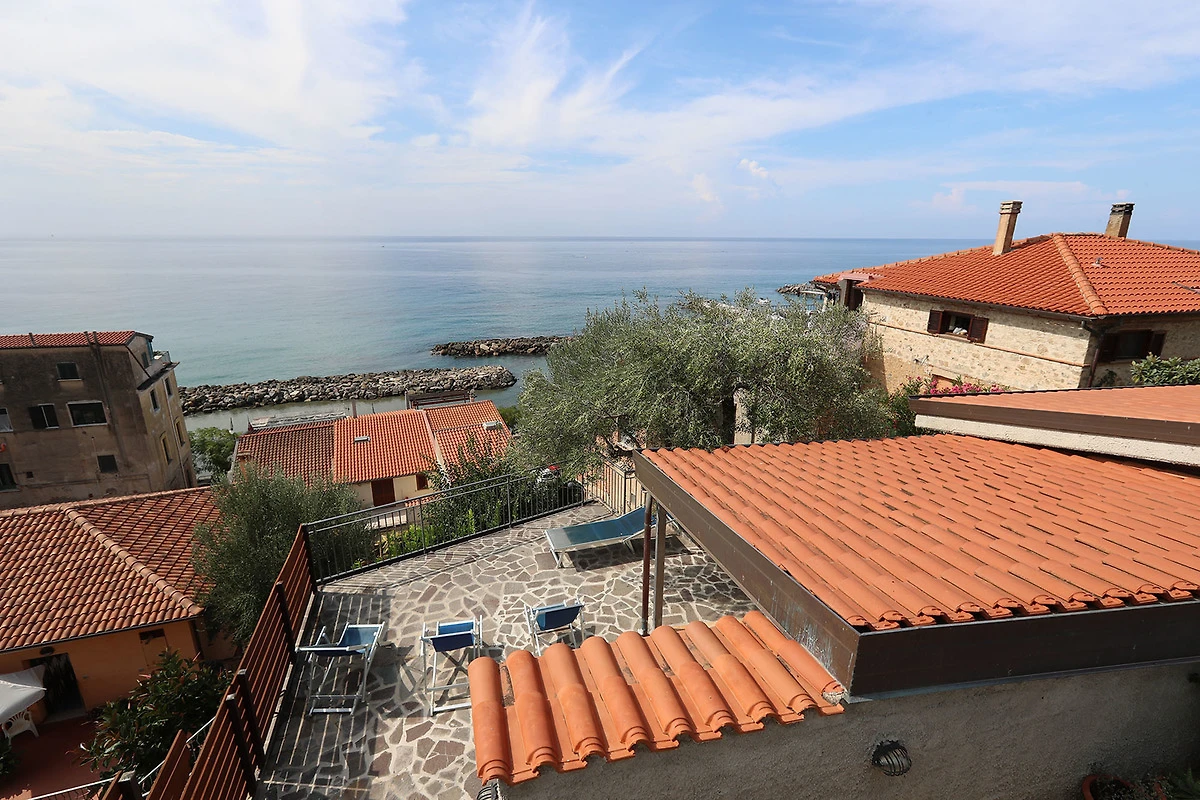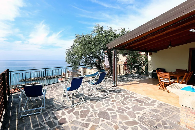 Herzstück des Ferienhauses ist die grosse, möblierte und teils überdachte Terrasse mit wunderschönem Meerblick. Beobachten Sie von hier aus, vielleicht bei einem Glas cilentanischen Weins, die ausfahrenden Fischerboote oder lassen Sie einfach Ihren Blick in die Ruhe des tiefblauen Meeres eintauchen.