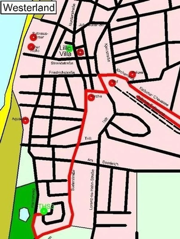 Die Fussgängerzone der Stadt Westerland ist in 15 Minuten zu Fuss zu erreichen. Auf dem Weg dorthin liegt das Sylt-Aquarium. Durch das angrenzende Südwäldchen führen schöne Spazierwege und der Fuss-und Radweg in Richtung Hörnum , weiterhin befindet sich dort ein Abenteuerspielplatz für Kinder. Ein Bäcker ist in der Maybachstrasse/ Eckesüderstrasse. und die Osteria am Campingplatz sind in 5 Minuten zu Fuss zu erreichen.
