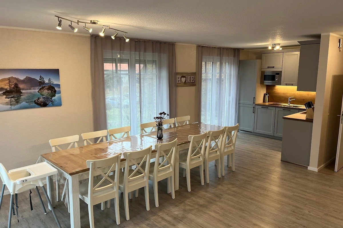 Unsere Ferienhaus Walsroder Sonnenzauber verfügt über 4 Schlafzimmer, eine gut eingerichtete Einbauküche, ein grosses Wohnzimmer mit Essbereich sowie ein Bad mit Dusche, Wanne, Doppelwaschtisch und WC und ein Bad mit Waschtisch, Dusche und WC. Im Haushaltsraum stehen eine Waschmaschine und ein Wäschetrockner zur Verfügung.