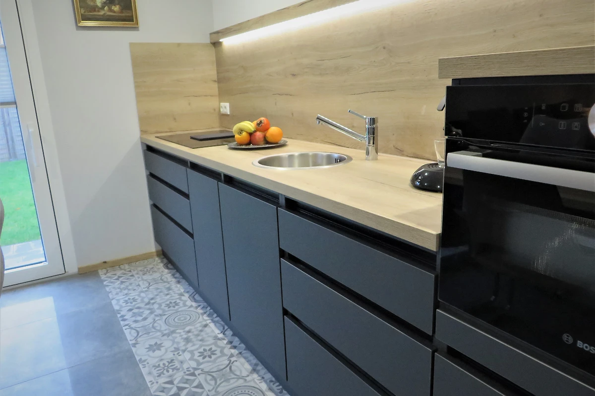 Ein Ferienhaus zum Wohlfühlen: Alle Räume sind mit Fussbodenheizung, elektrischen Rolläden und W-Lan ausgestattet. Im hellen Schlafzimmer befindet sich ein grosszügig geschnittenes Doppelbett, ein Schiebeschrankelement mit angrenzender Wildeiche-Optik sowie ein Flachbild-TV. In der modernen Wohnküche finden Sie eine bequeme Couch, ein Flachbild-TV an der Wand und einen handgefertigten Esstisch mit Komfort-Stühlen. Unsere Küche gehört zum Wohnkomfort und ist unter anderem mit einem Induktionskochfeld mit integriertem Abzug und Kombibackofen mit Mikrowelle ausgestattet. Das Badezimmer hat eine ebenerdige, grosszügig geschnittene Dusche mit Trend-Optikfliesen, Waschtischanlage inkl. Spiegel mit Beleuchtung. Unser Haus verfügt über zwei Sonnenterrassen, Gartenmöbel, Relaxliegen und Sonnenschirm. Wäschepakete können gegen Gebühr dazu gebucht werden.