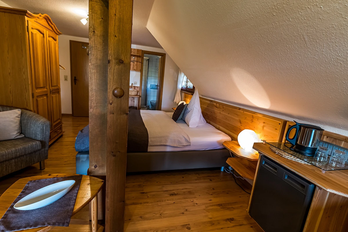 Geniessen Sie auf dem möblierter Südbalkon unter unserem erhabenen Walmdach die klare Schwarzwaldluft.