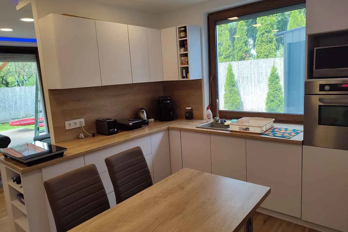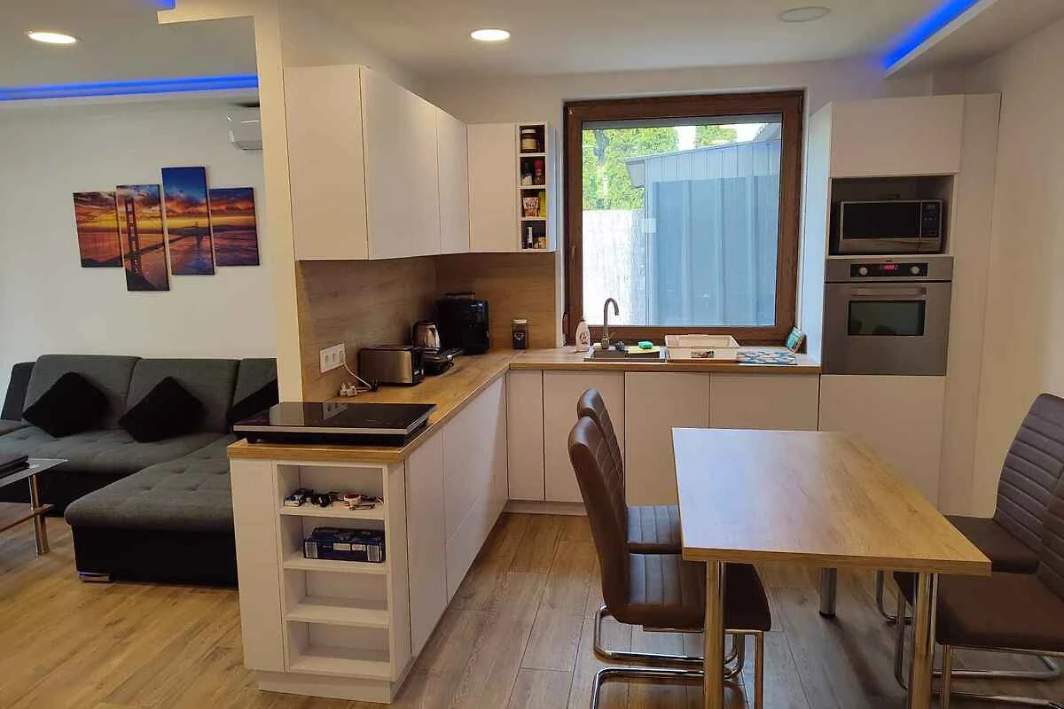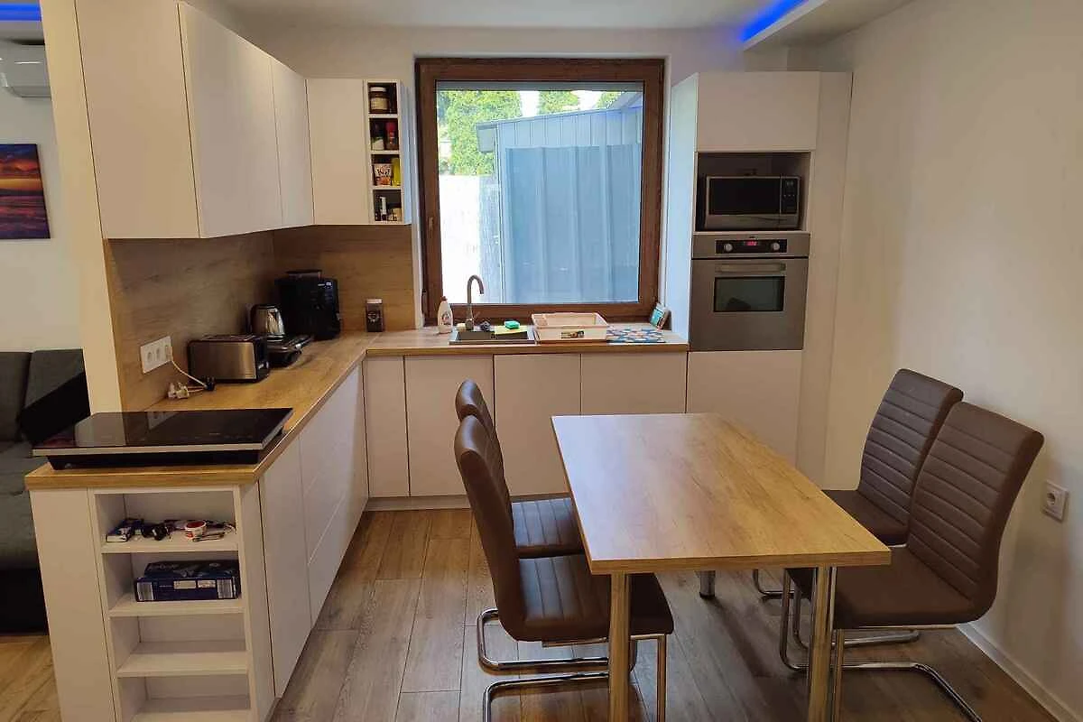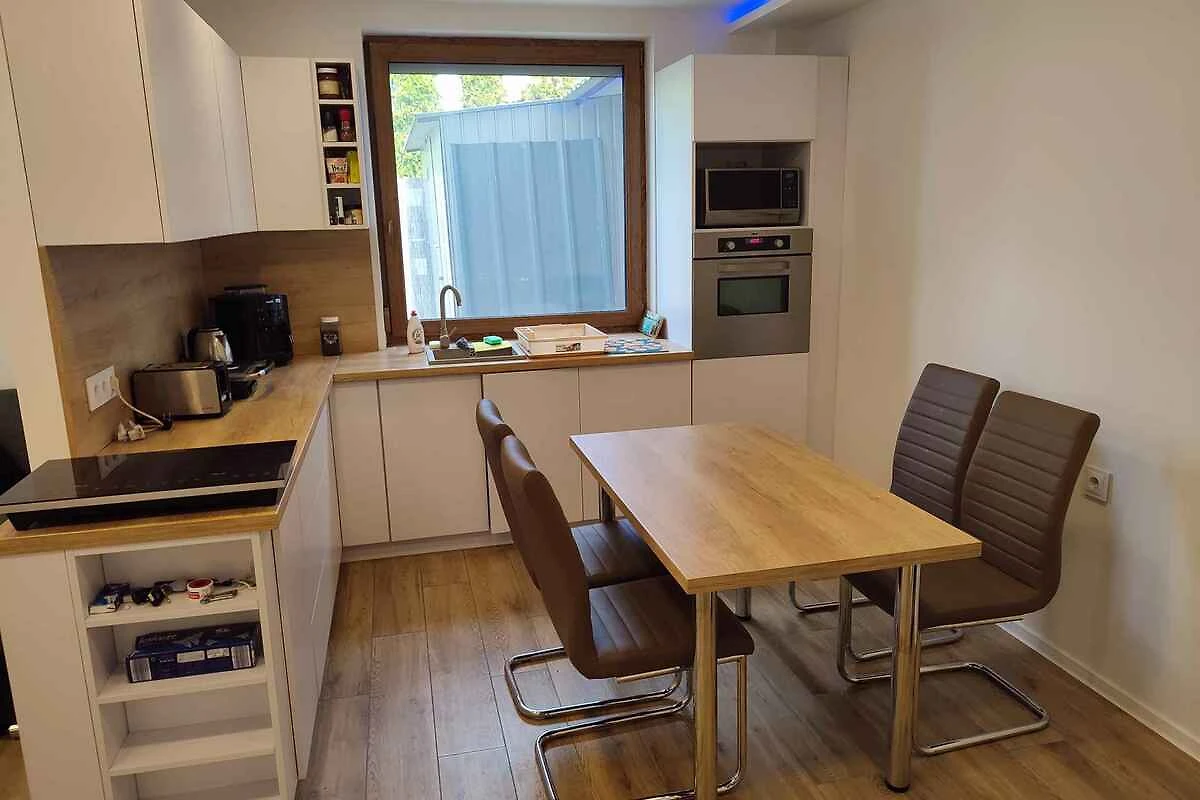 Das 2020 erbaute Ferienhaus ist eine Doppelhaushälfte und modern eingerichtet. Das Grundstück befindet sich in einer Ferienhaus-Siedlung. Auch wegen der ruhigen und sonnigen Lage ist das Domizil beliebt. Zur alleinigen Nutzung stehen zur Verfügung: Kinderspielplatz, Grillmöglichkeit, Terrasse und Gartenmöbel.