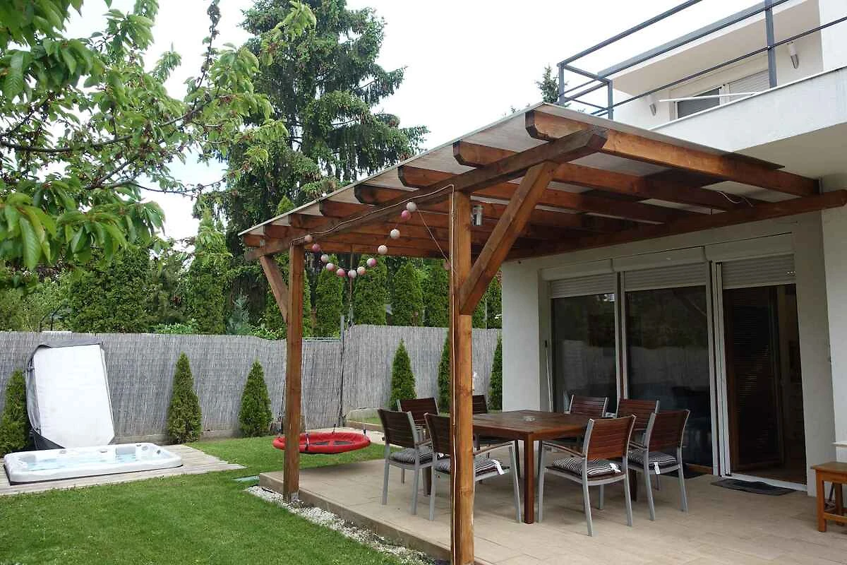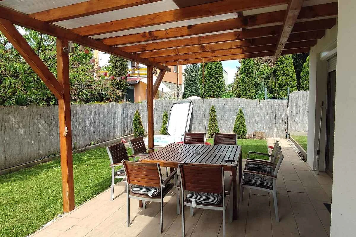 Siófok. Das Ferienhaus befindet sich auf einem 200 qm grossen, geschlossenen Gartengrundstück mit Wiese und Sträuchern, von einem Zaun begrenzt. Der Vermieter wohnt nicht im Haus oder auf dem Grundstück. Die Zufahrt erfolgt über eine Nebenstrasse (asphaltiert). Parkplatz (für 2 Pkws) auf dem Grundstück. Weitere Parkplätze auf der Strasse vor dem Haus kostenlos.