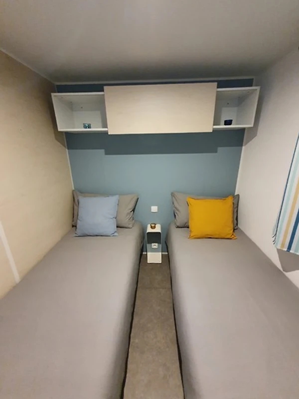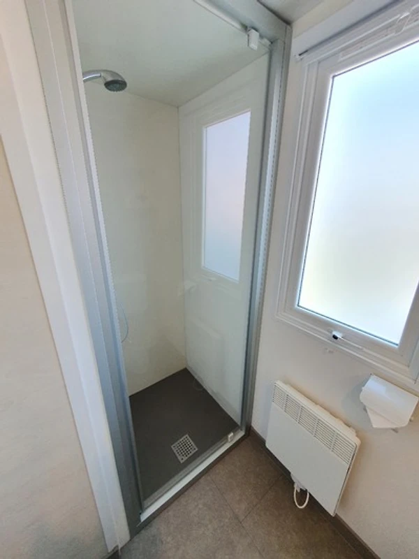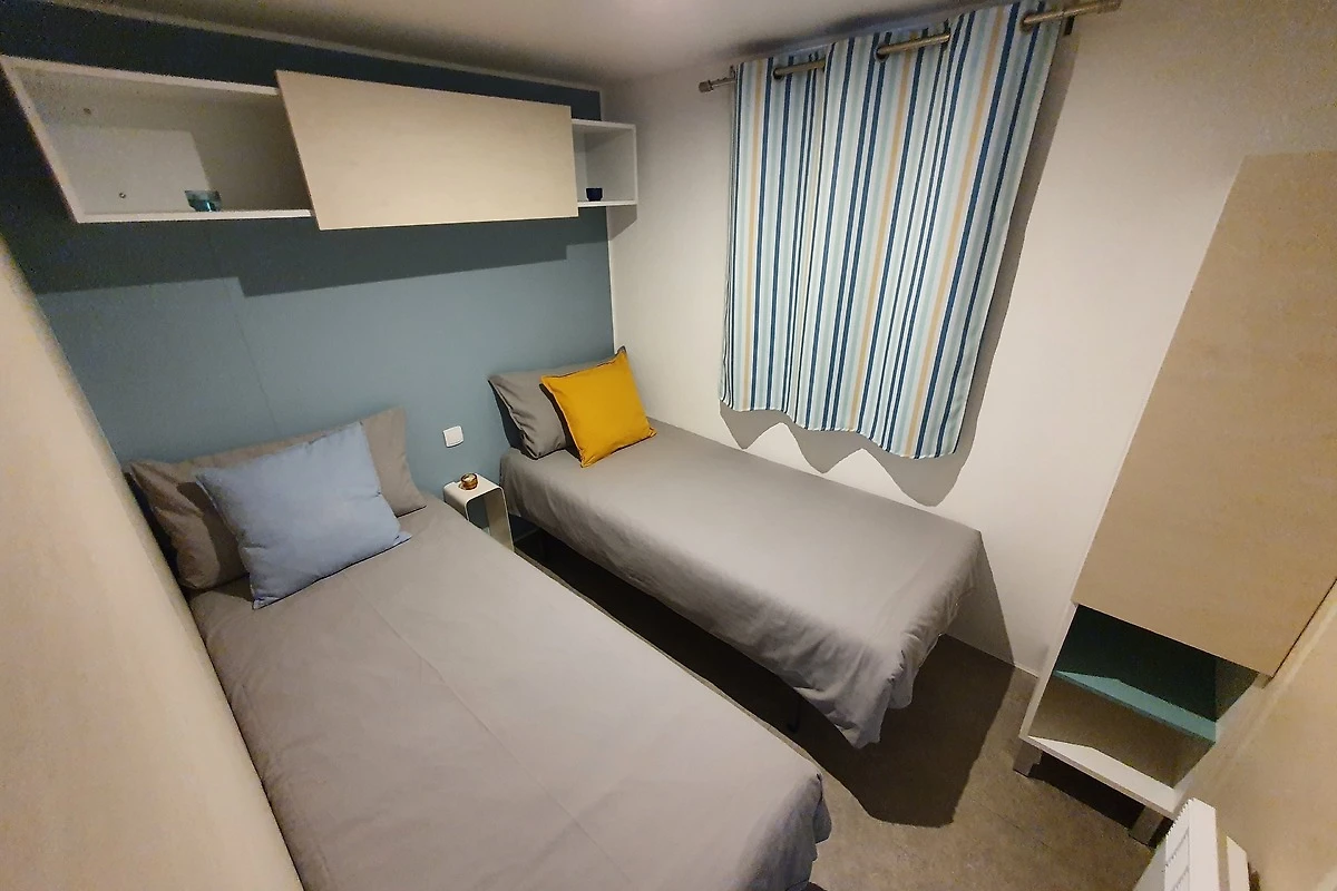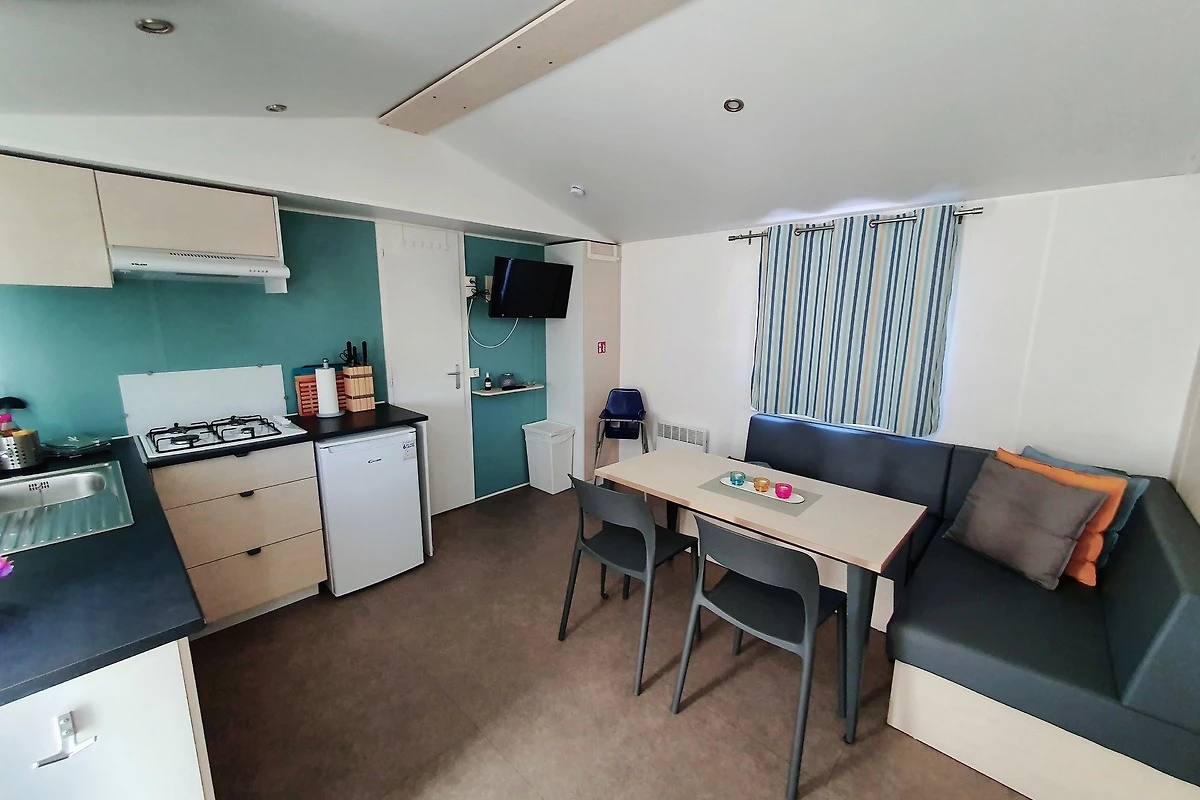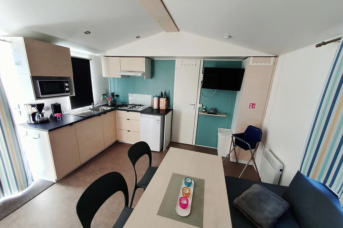 Unsere Mobilheime sind hell und modern ausgestattet und verfügen jeweils über einen kombinierten Wohn-/Essbereich mit integrierter Küchenzeile, 2-3 Schlafzimmern, 1-2 Bädern mit Dusche sowie 1-2 separaten WC. Eines der Bäder ist jeweils direkt von einem der Schlafzimmer aus zugänglich (en-suite). Auf der Terrasse stehen Ihnen ein eigener Strandkorb, ein Tisch mit Bänken und Sonnenschirm sowie ein Grill zur Verfügung. Ein kleiner Gartenbereich sorgt für weitere Entspannungsmöglichkeiten. Ihr Auto parken Sie direkt am Mobilheim.