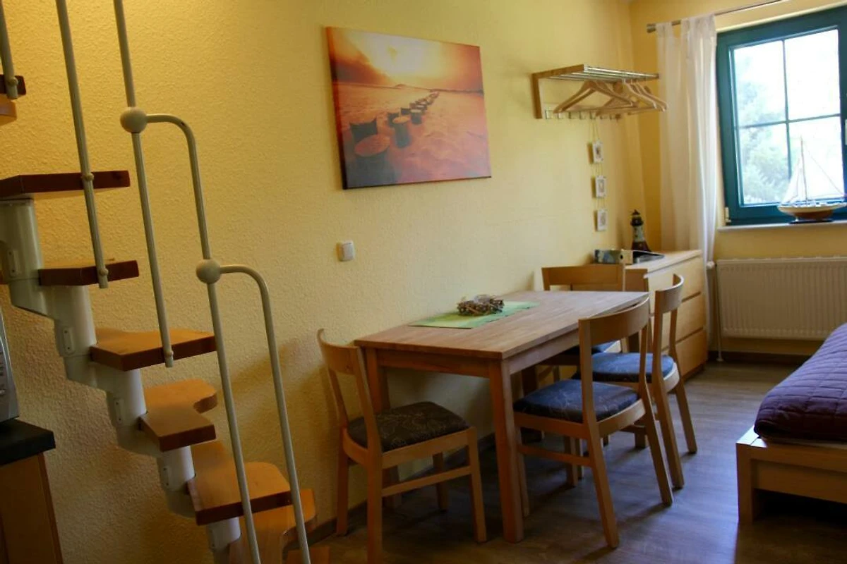 Das Ferienhaus Vogelnest Prerow befindet in der Strandstrasse 3A direkt hinter dem Deich am Prerow Strom. Die 4 liebevoll eingerichteten Wohnungen verfügen über einen Wohn-/ Essbereich mit einer bequemen Sofaecke mit TV, einen Esstisch mit Stühlen und über eine Küchenzeile mit Cerankochfeld und Mikrowelle/Grill. Die Bäder sind mit Dusche, Waschbecken und Toilette ausgestattet. Die Wohnungen verfügen über einen WLAN-DSL Internetzugang. Hochstühle und Kinderreisebetten sind für alle vorhanden und werden bei Bedarf in die Wohnung gestellt. Unsere Ferienhaus hat Nichtraucherwohnungen! Vor dem Haus gibt es PKW-Stellplätze. Für die Wohnungen ist im grosszügigen Garten je eine Terrasse mit Strandkorb und Gartenstühlen vorhanden. Wir würden uns freuen, Sie bei uns begrüssen zu können. Handtücher und Bettwäsche sind im Preis enthalten.